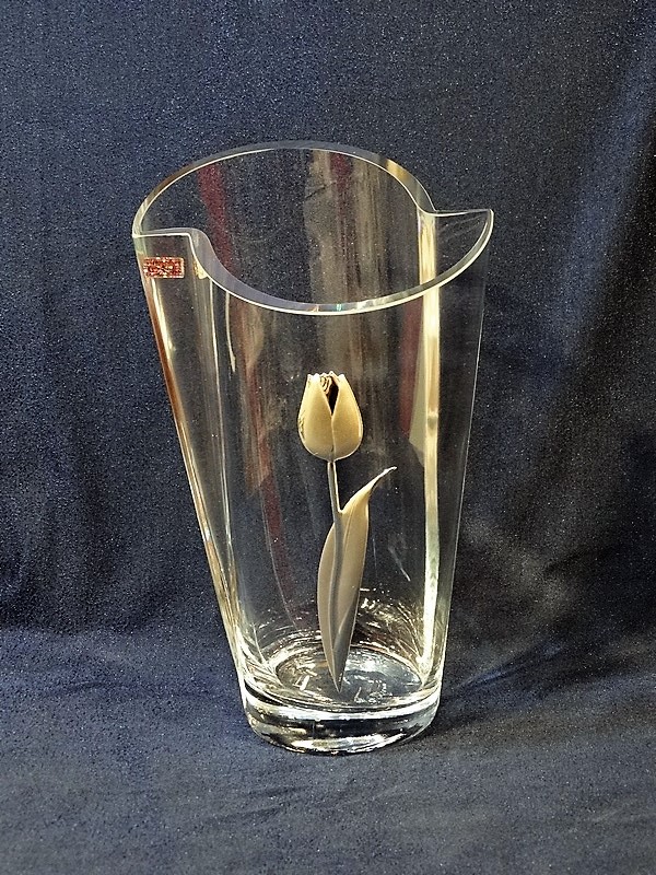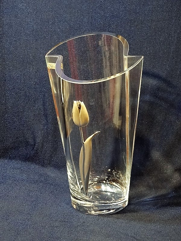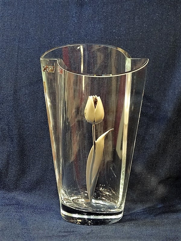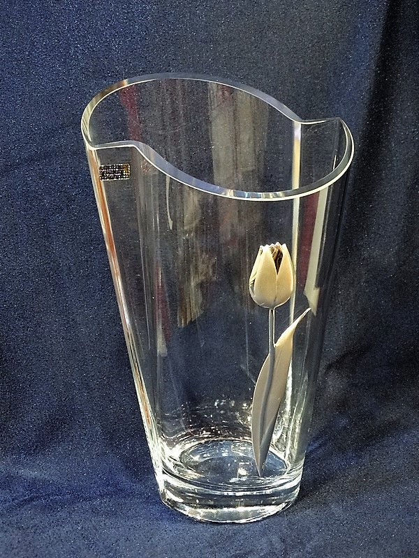 Wazon Ox-Art Decorator 410/300 z ozdobnym tulipanem, wysokości 30 cm, z grawerem.