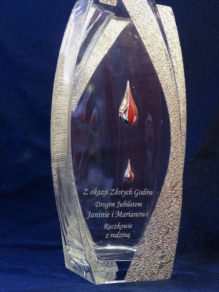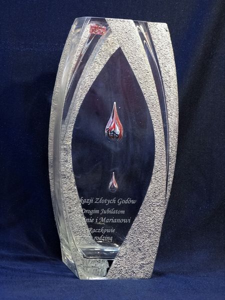 Intrygująca forma i zdobienie wazonu w połączeniu z dedykowanym pamiątkowym grawerem wzbudzi zachwyt i niepowtarzalne emocje obdarowanych.