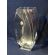 Niepowtarzalny, ręcznie formowany, zdobiony wazon szklany w obłym kształcie z bocznymi, łukowatymi, falowanymi schodkami.