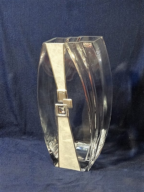Elegancki wazon ozdobiony srebrem i kryształem.