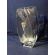 Niepowtarzalny, ręcznie formowany, zdobiony wazon szklany w obłym kształcie z bocznymi, łukowatymi, falowanymi schodkami.