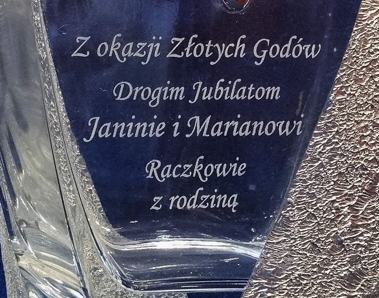 Na powierzchni wazonu wykonujemy grawer według uzgodnionego wcześniej projektu: