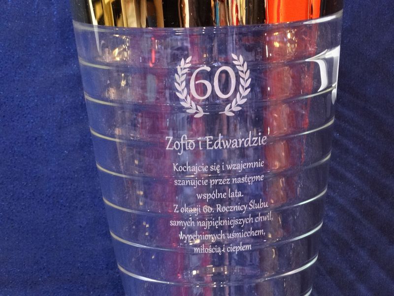 Na powierzchni wazonu wykonujemy grawer według uzgodnionego wcześniej projektu: