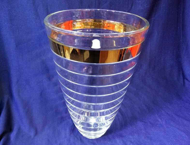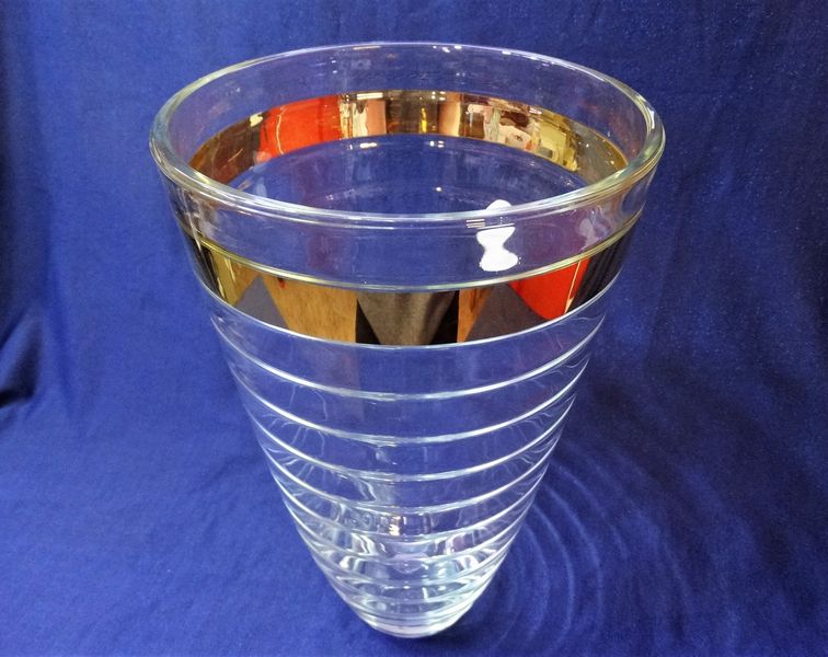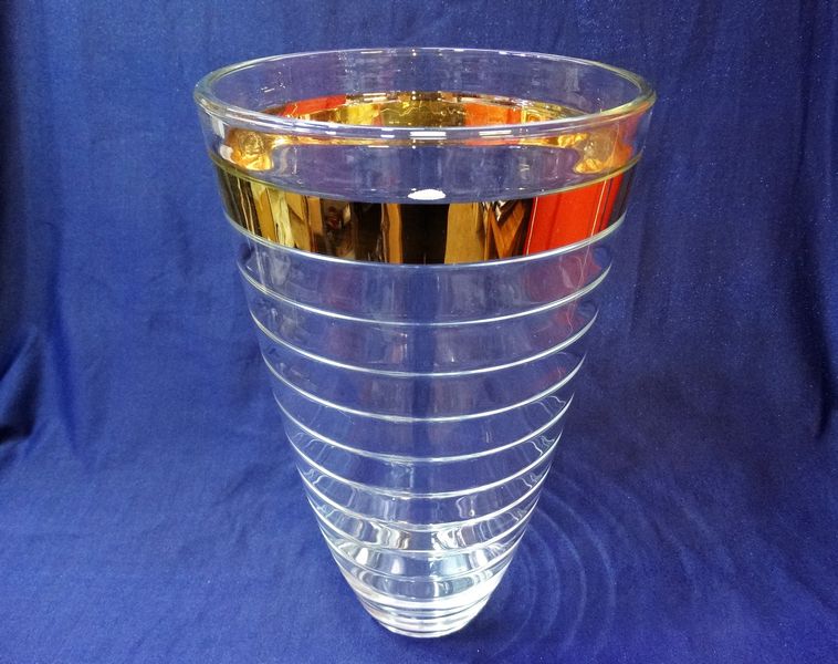 Wazon szklany z kolekcji Baguette ze złotym ozdobnym otokiem o interesującym, niepowtarzalnym wyglądzie.