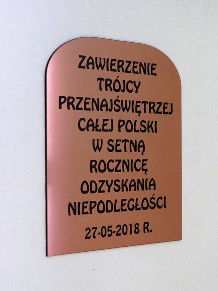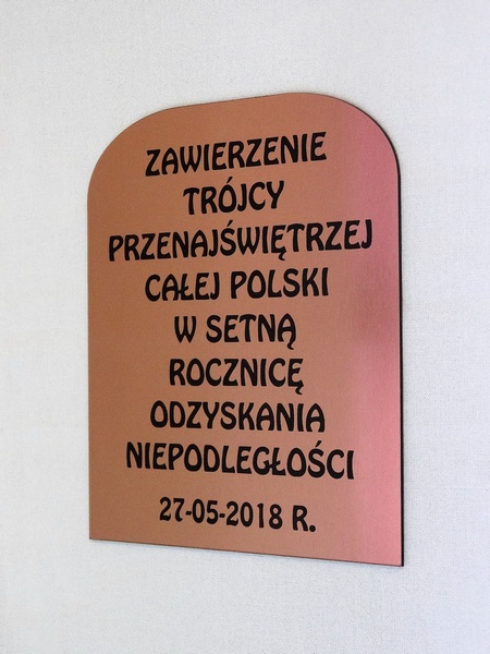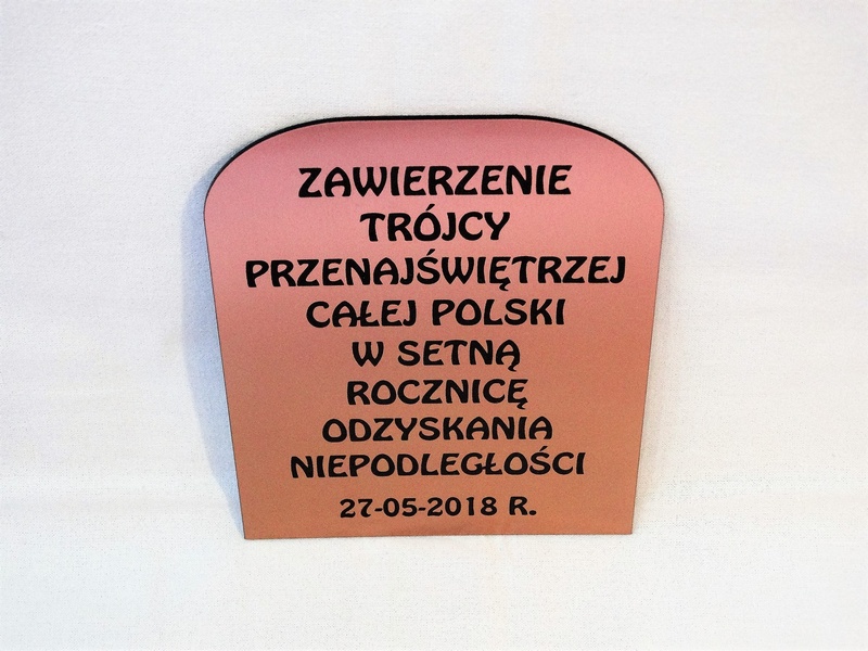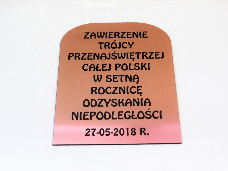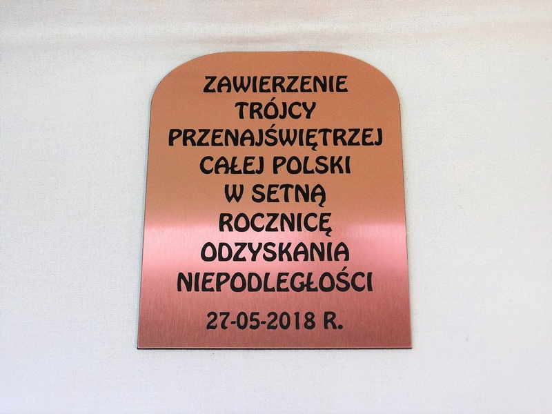 Tablica wykonana jest z laminatu grawerskiego, grubości 3,2 mm, a dedykacja jest grawerowana.
