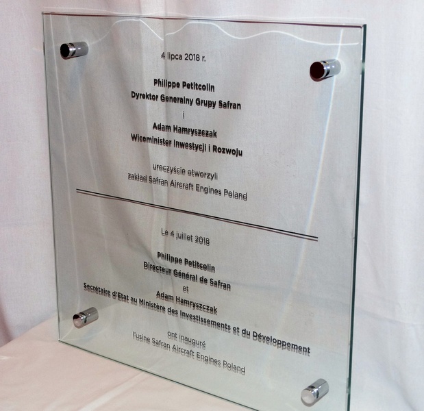 Tablica pamiątkowa szklana z grawerem, 50 x 50 cm.