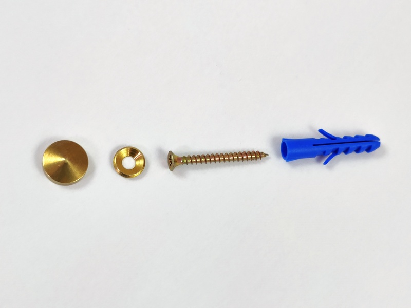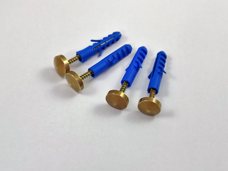 Zestaw składa się z 4 wkrętów z dyblami przeznaczonymi do montażu tablicy wraz z ozdobnymi łebkami.