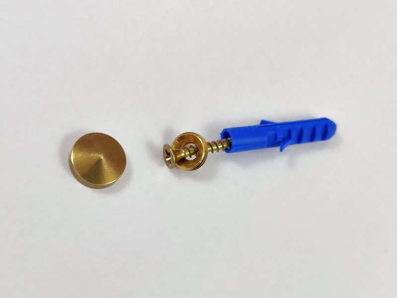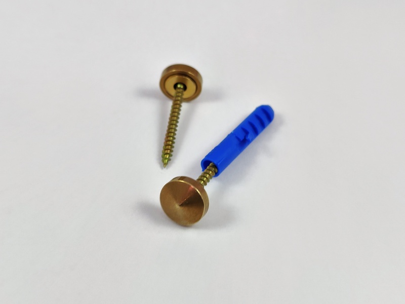Zestaw ozdobnych wkrętów montażowych do mocowania tablicy.