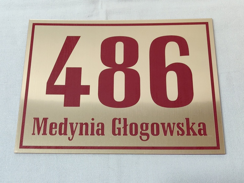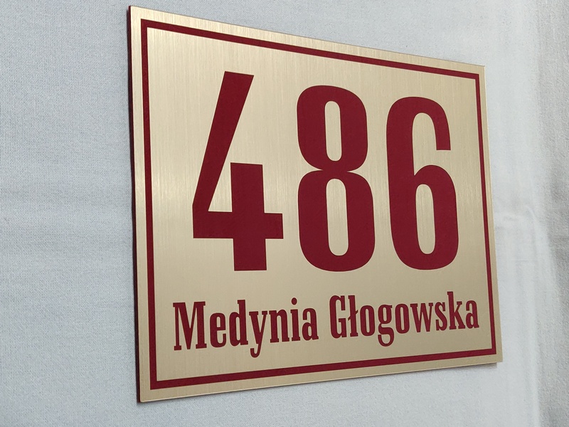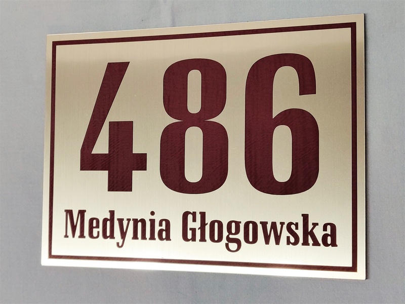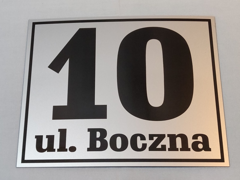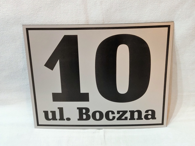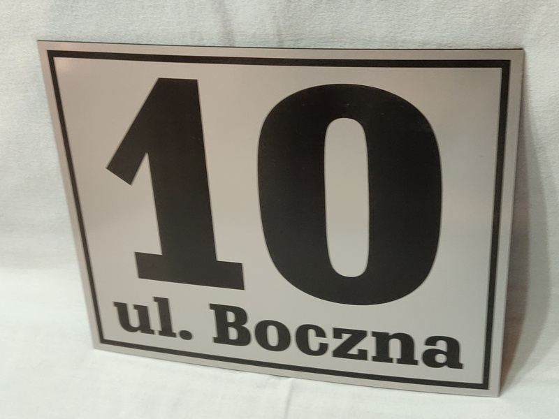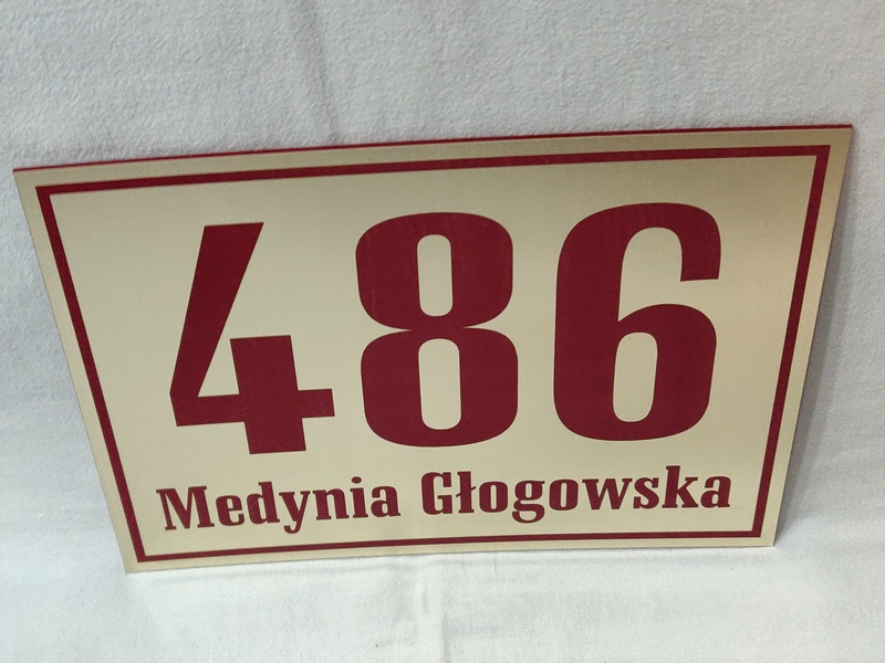 Tabliczka posesyjna z laminatu grawerskiego w różnych rozmiarach.