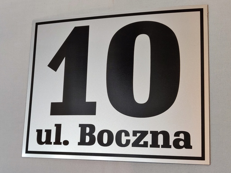 Tabliczka z laminatu odporna jest na warunki atmosferyczne.