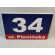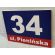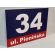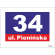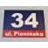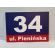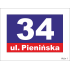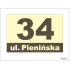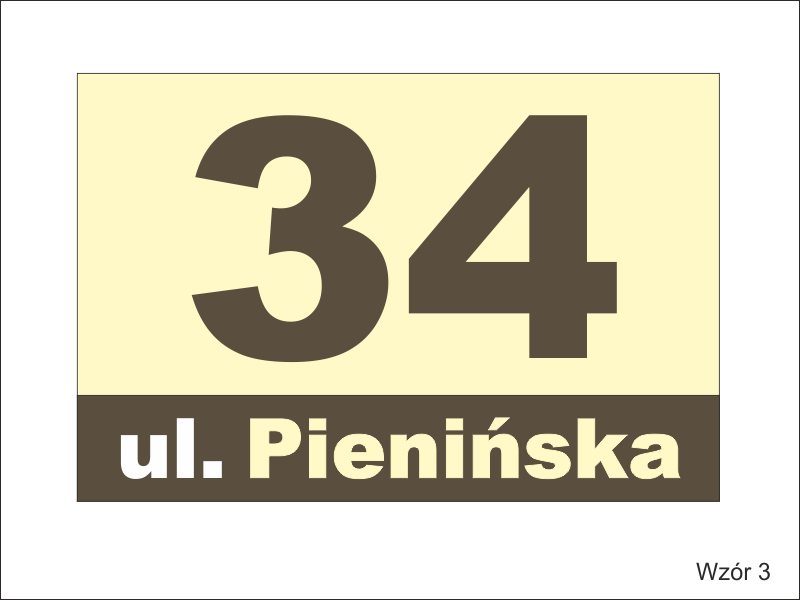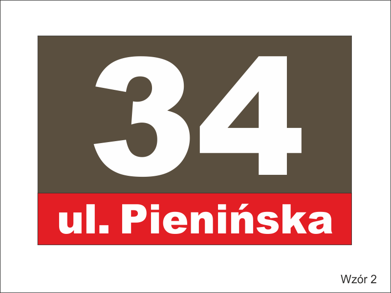 Tabliczka posesyjna z nazwą ulicy i numerem domu na dwukolorowym tle.
