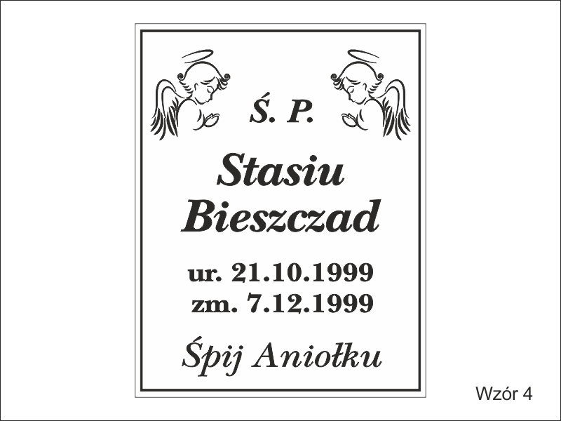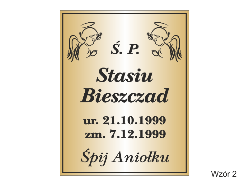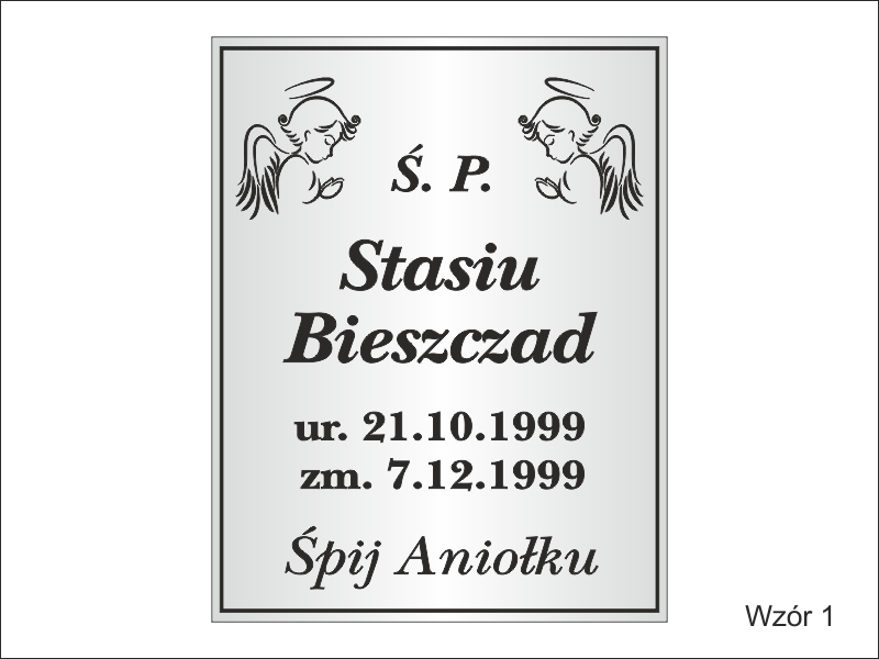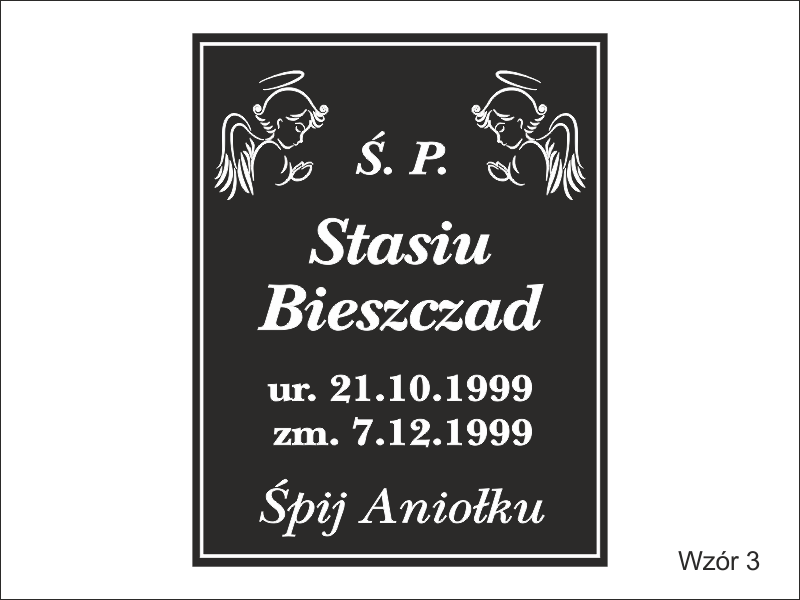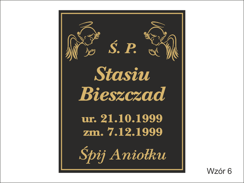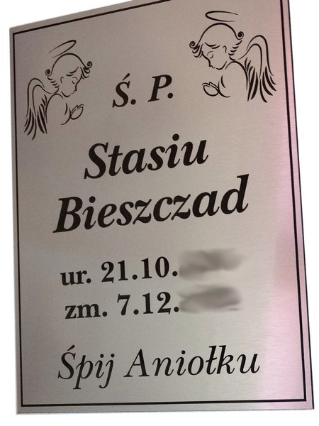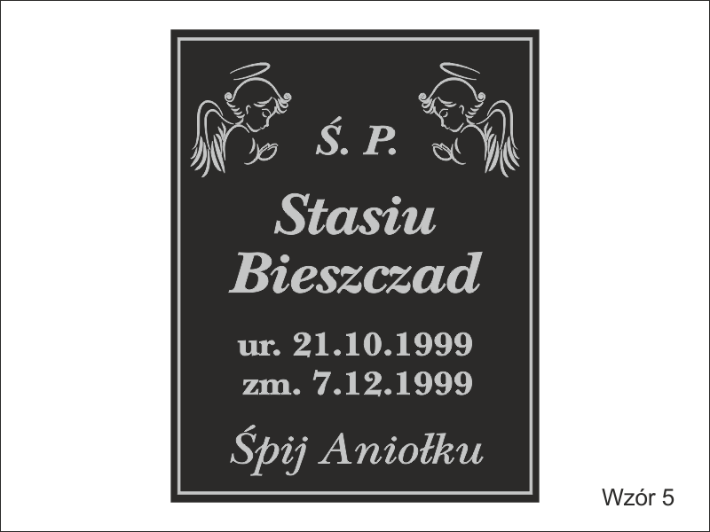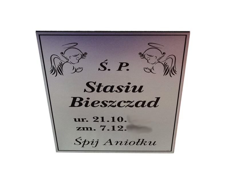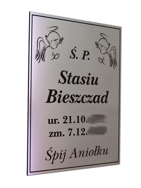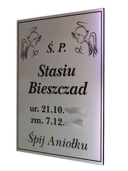 Tablica nagrobkowa laminatu grawerskiego w różnych rozmiarach z motywem aniołków.