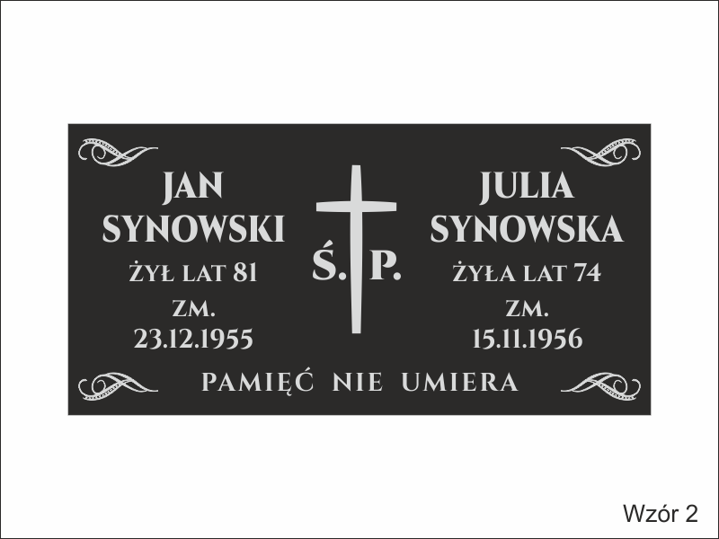 W treści i rozmieszczeniu tabliczki ujęte zostały dwie osoby zmarłe.
