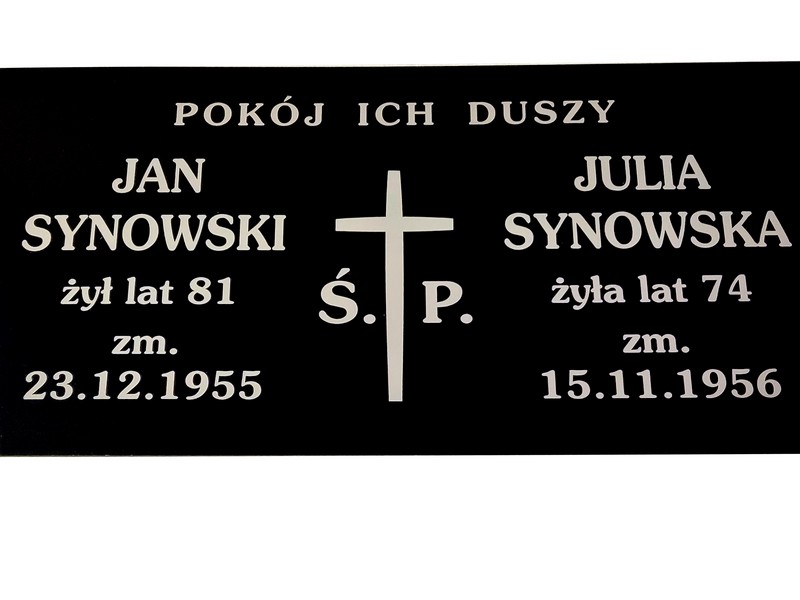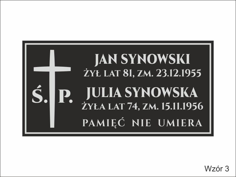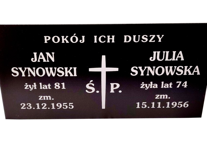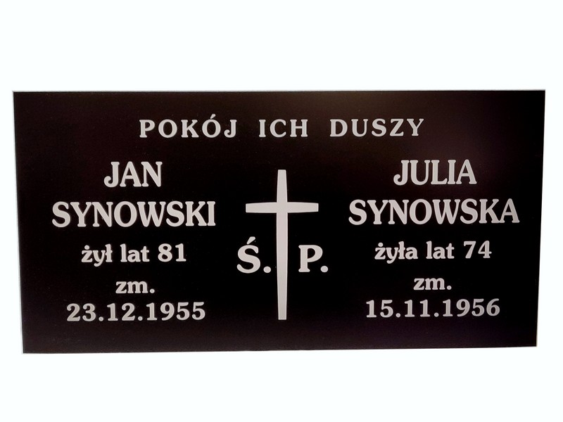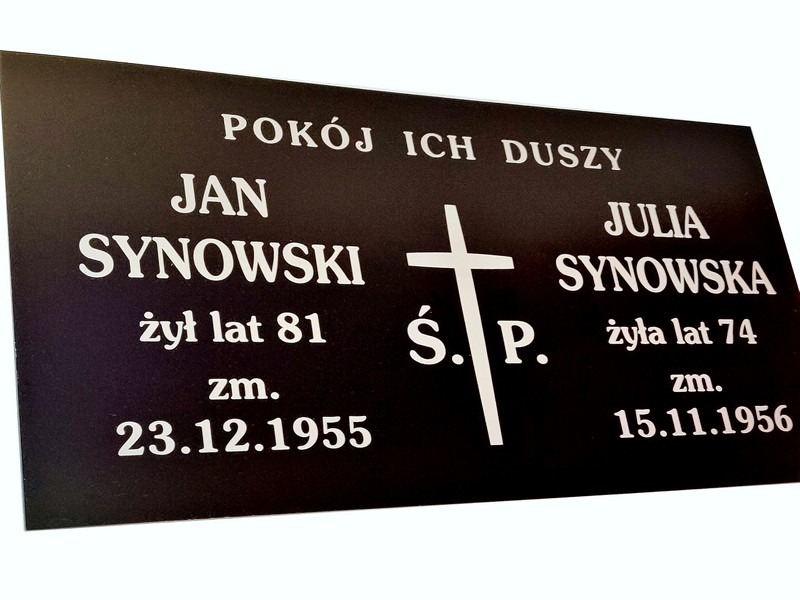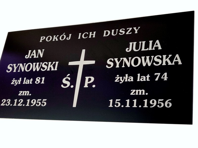 Tablica nagrobkowa podwójna grawerowana, wykonana z laminatu grawerskiego, w różnych rozmiarach.