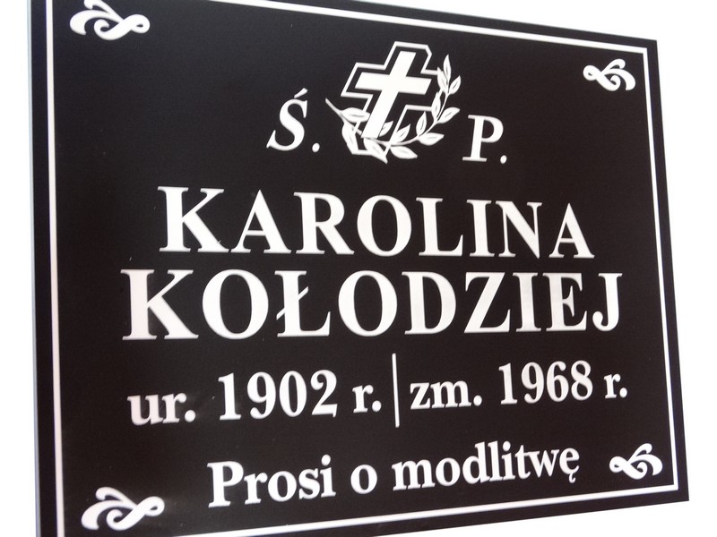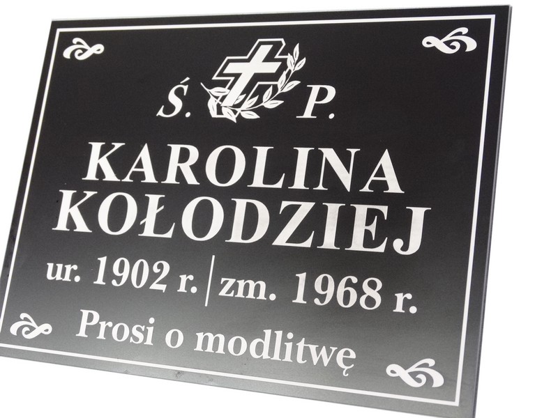 Na tabliczce grawerowana może być treść, napis, ozdobniki czy grafiki.