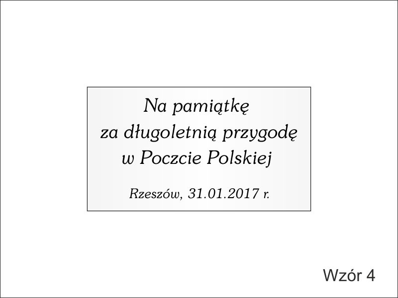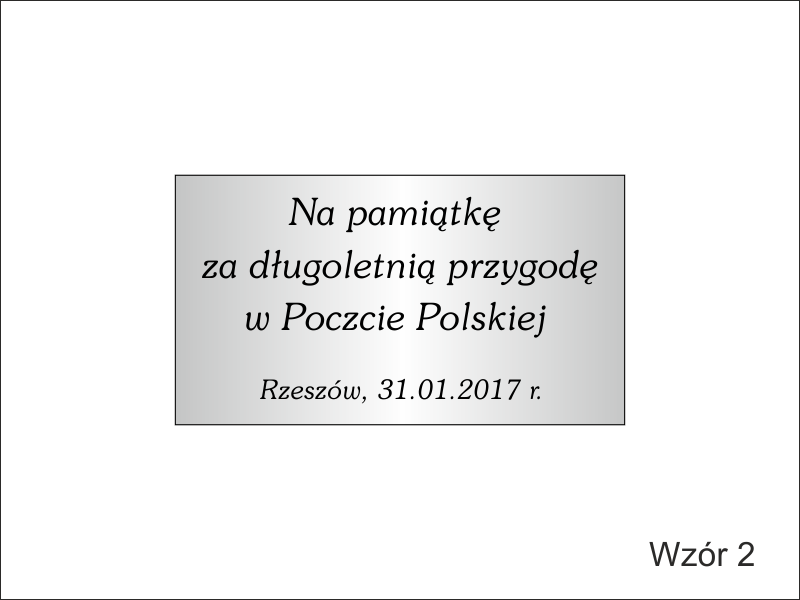 Na tabliczce umieszczona jest pamiątkowa dedykacja, napis, data, grafika lub ozdobniki.