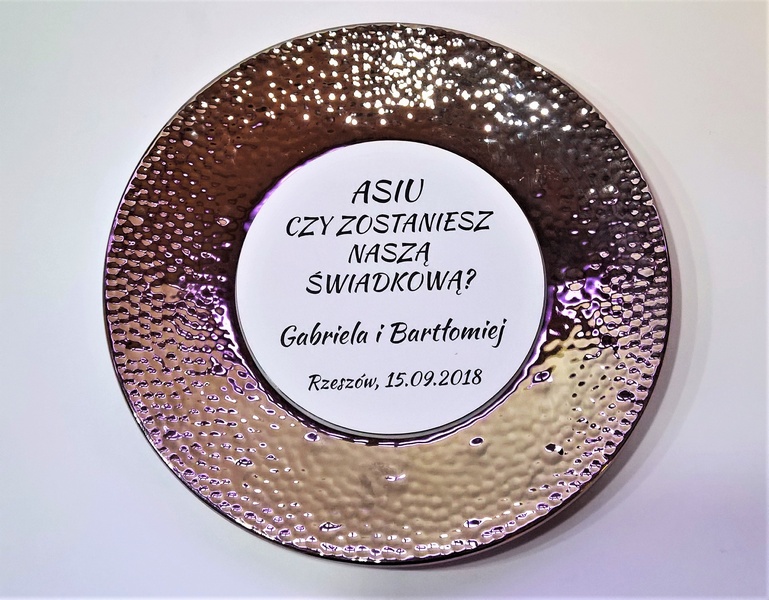 Na tabliczce grawerowana jest pamiątkowa dedykacja, napis, data, grafika lub ozdobniki.