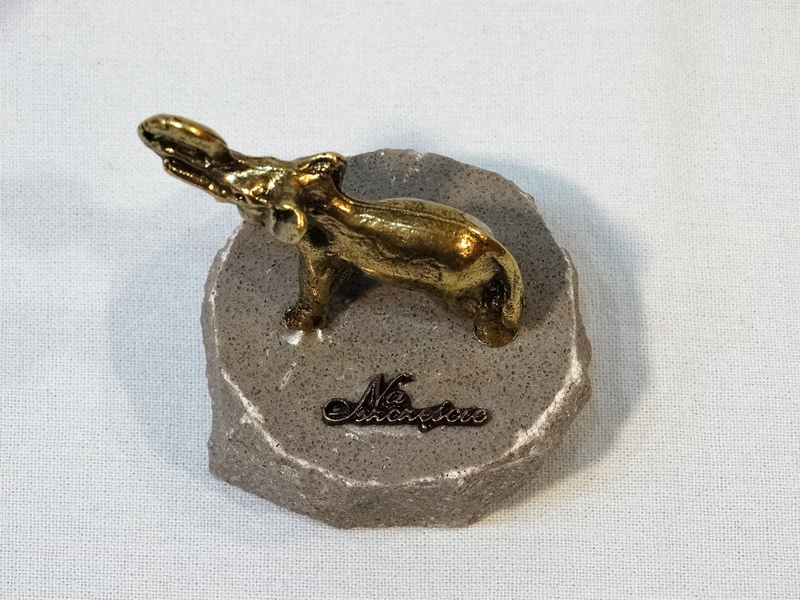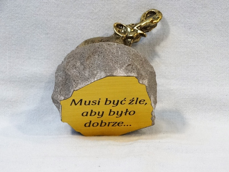 Przykładowa, prezentowana tabliczka ma rozmiar 4,5 x 4 cm (18 cm2) i wykonana jest w kształcie podstawy postumentu statuetki.