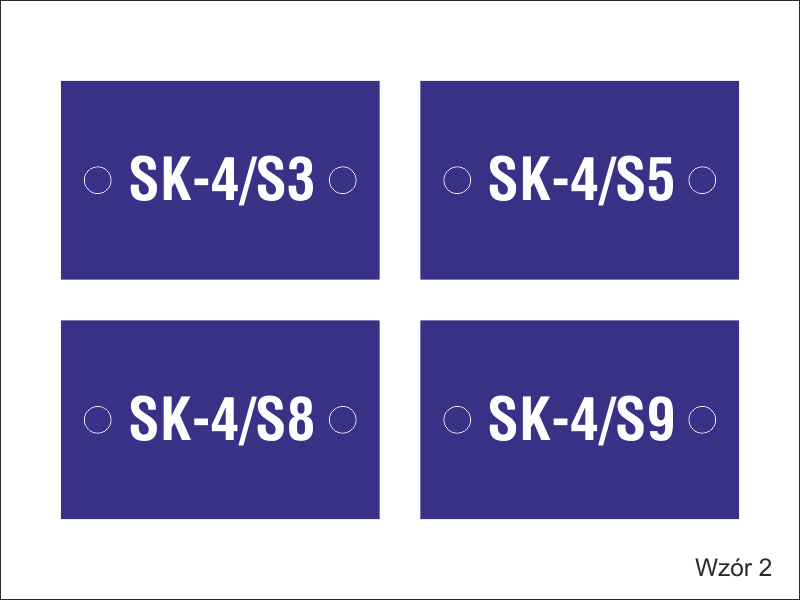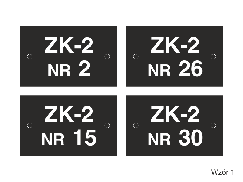 Prezentowana tabliczka ma rozmiar 60 x 40 mm, 80 x 50 mm, 100 x 60 mm.