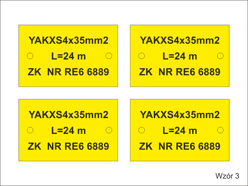 Tabliczka ma wycięte otwory po bokach w celu montażu do klabli lub instalacji.