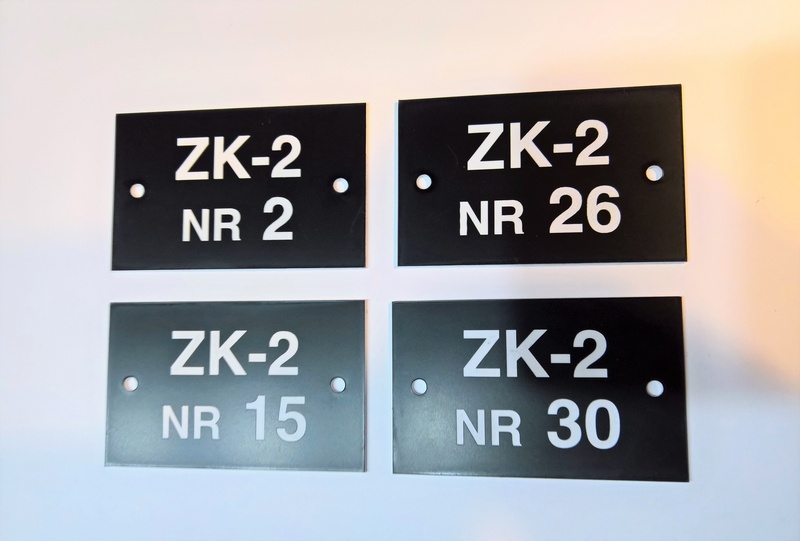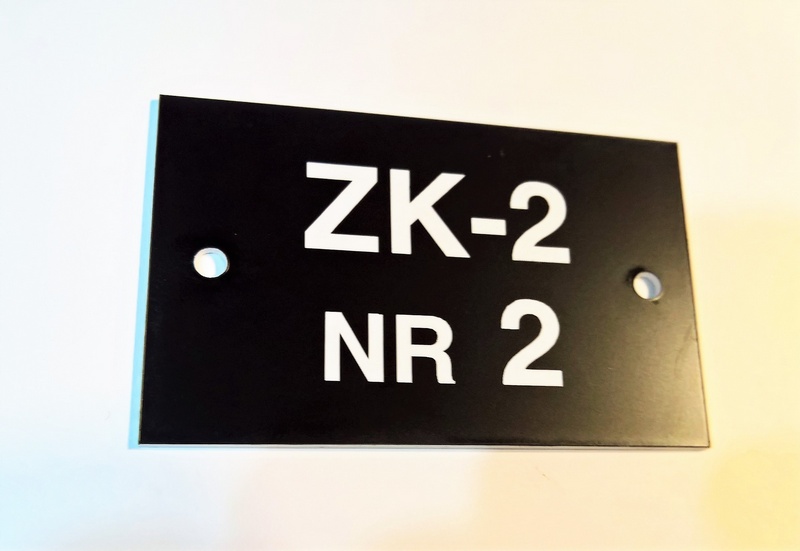 Laminat grawerski ma grubość 1,6 mm, i przycięty jest na dowolny wymiar tabliczki.