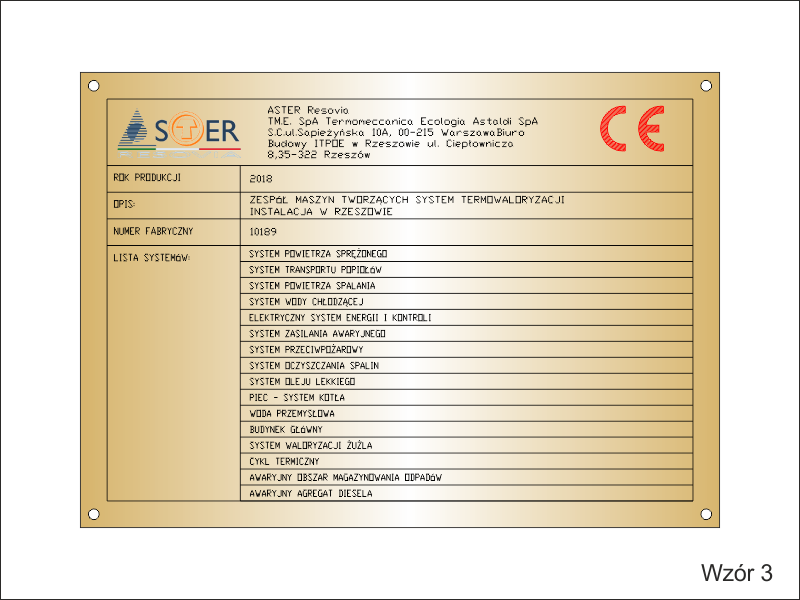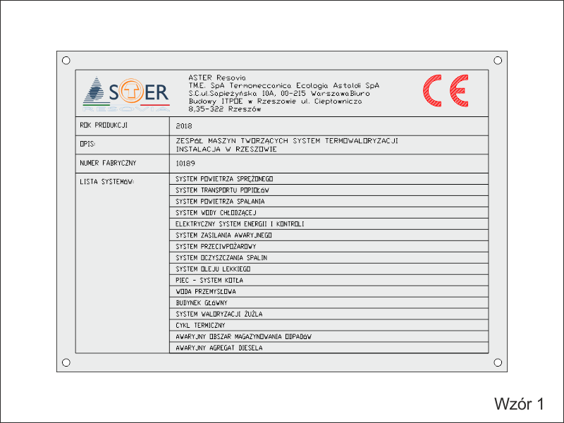 Tabliczka opisowa z blachy aluminiowej nadrukowana, w rozmiarze 240 x 170 mm.