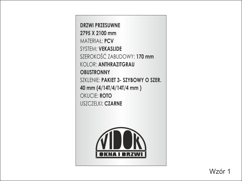 Prezentowana tabliczka ma rozmiar 60 x 100 mm, 75 x 140 mm, 90 x 170 mm.