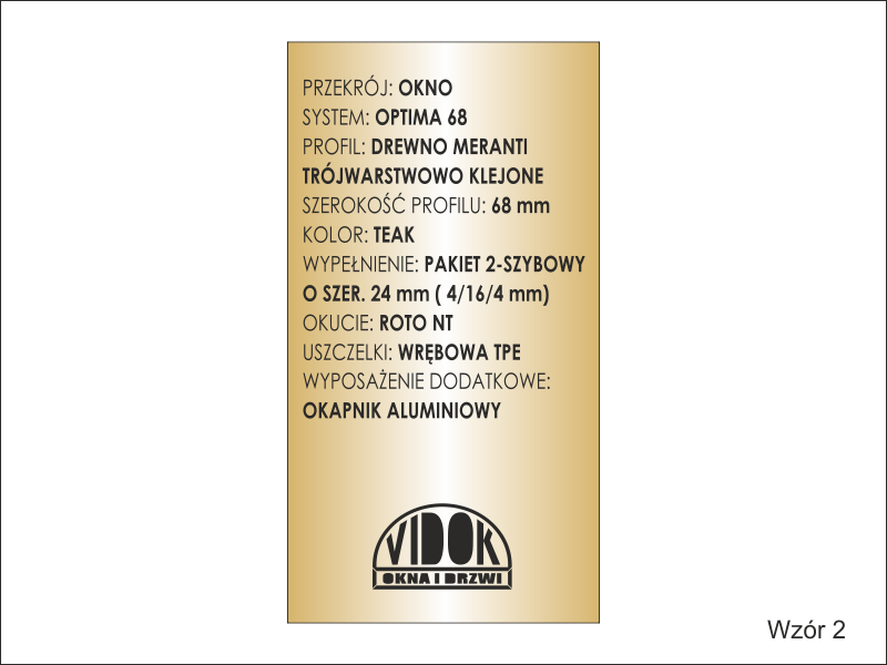 Tabliczka opisowa może mieć inny dowolny rozmiar i występować w innej kolorystyce (złoto/czarnej, biało/czarnej lub innej)