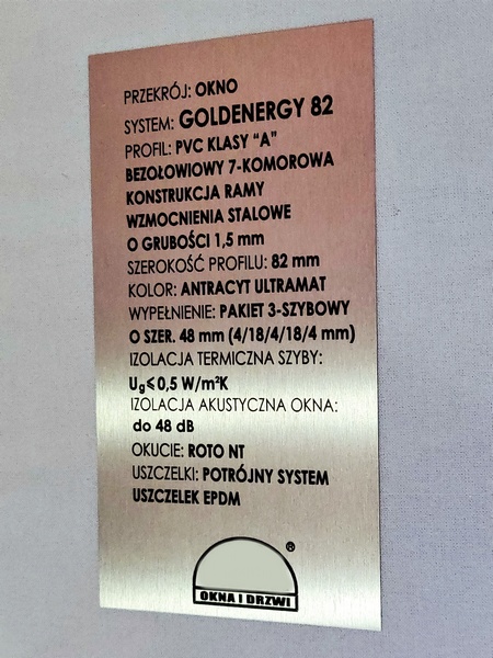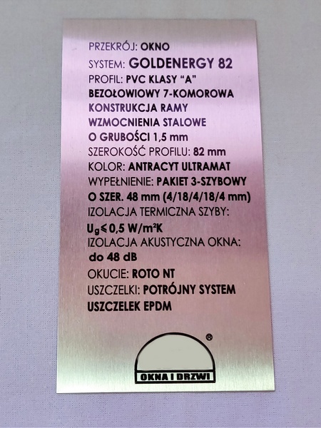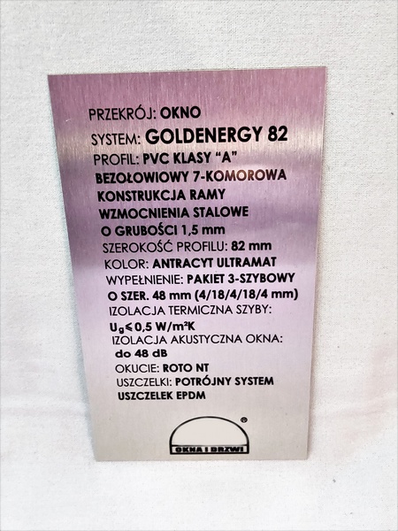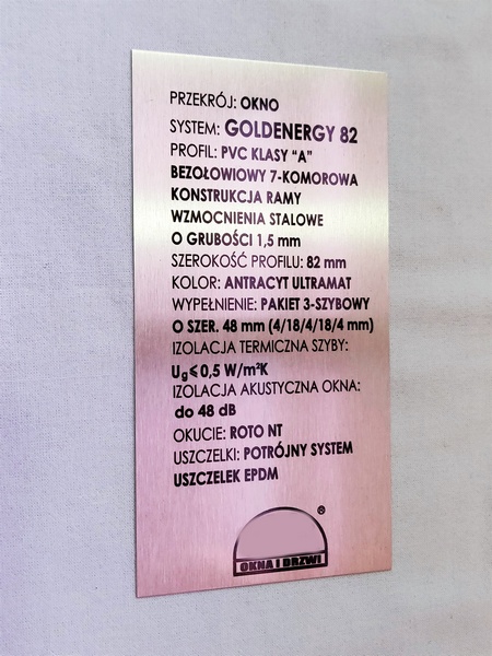 Tabliczka opisowa z blachy aluminiowej nadrukowana, w rozmiarze 60 x 100 mm.