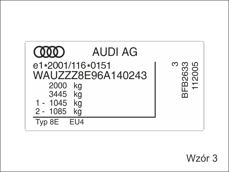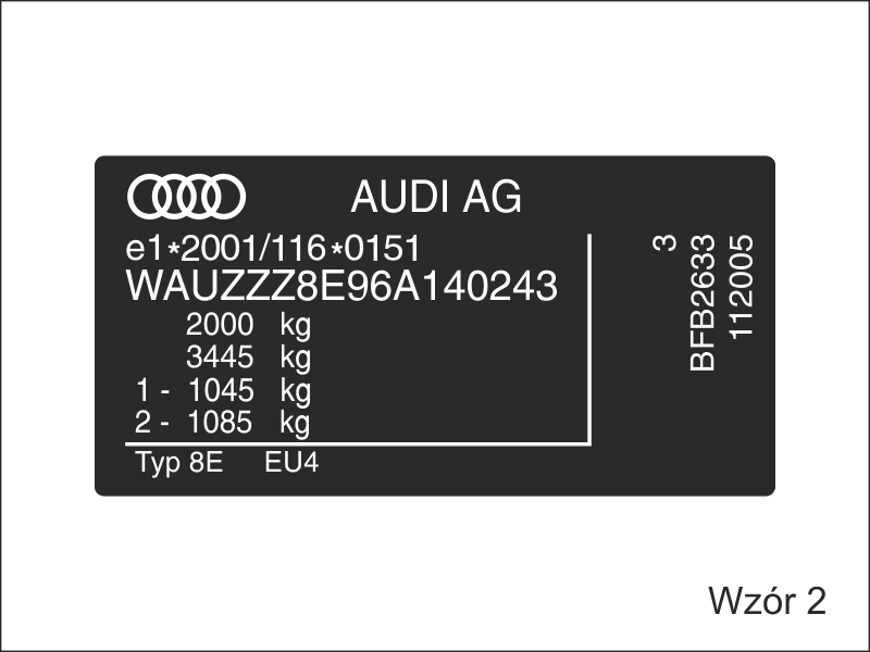 Tabliczka znamionowa może mieć inny dowolny rozmiar i występować w innej kolorystyce (czarno/białej,biało/czarnej lub innej)