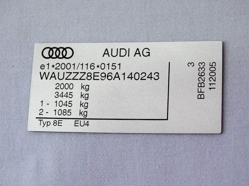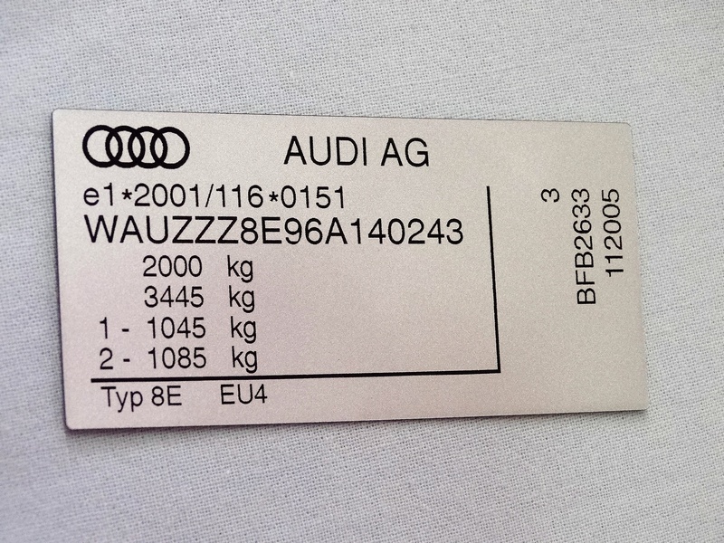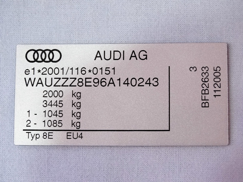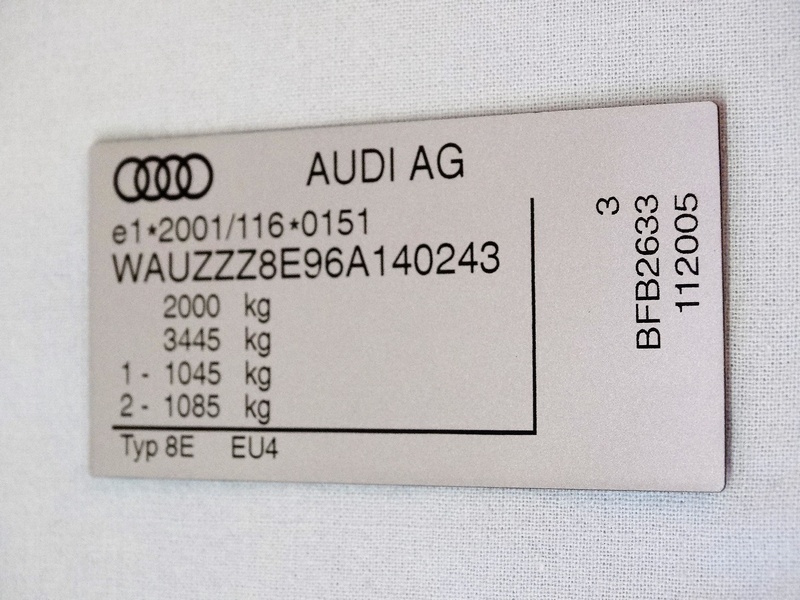 Tabliczka znamionowa ze srebrno/czarnego laminatu - naklejki, w rozmiarze 90 x 45 mm.