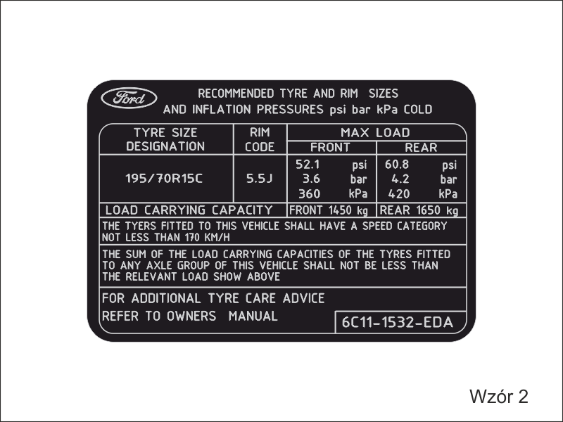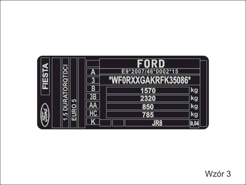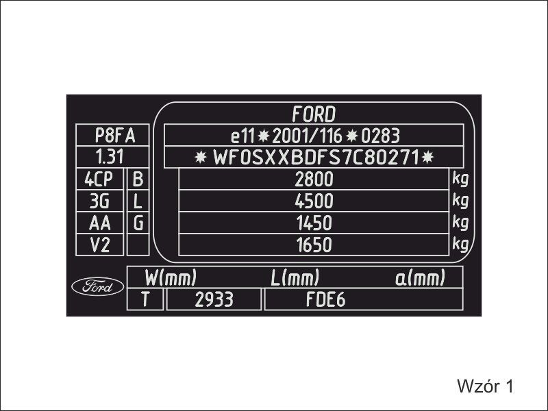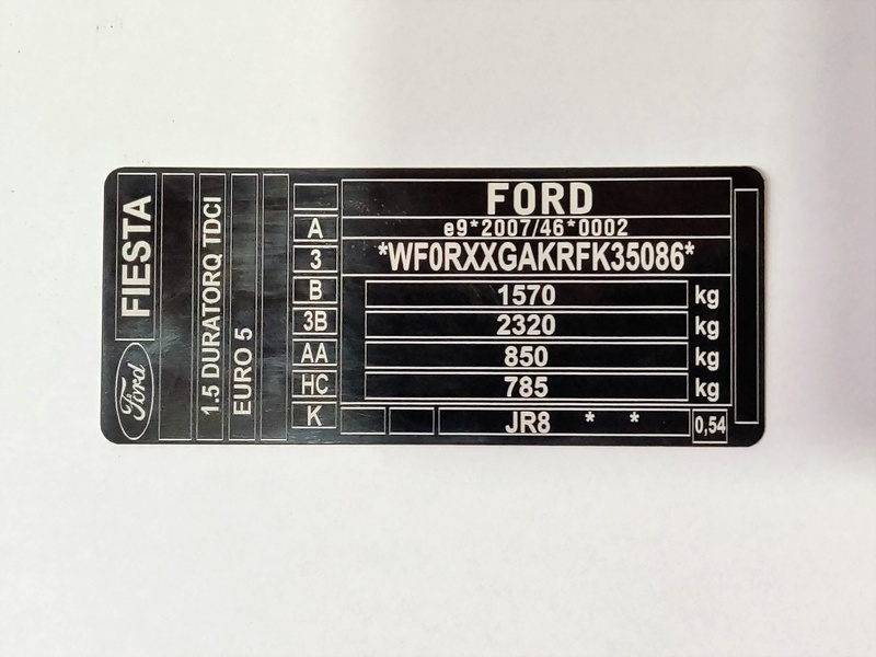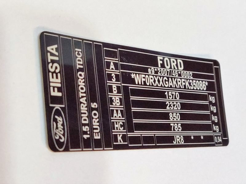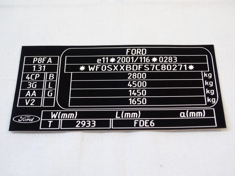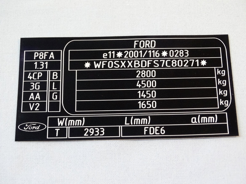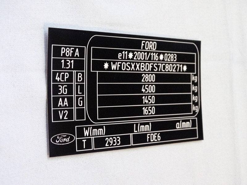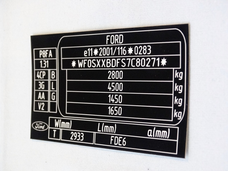 Tabliczka znamionowa Ford z czarno/białego laminatu-naklejki.