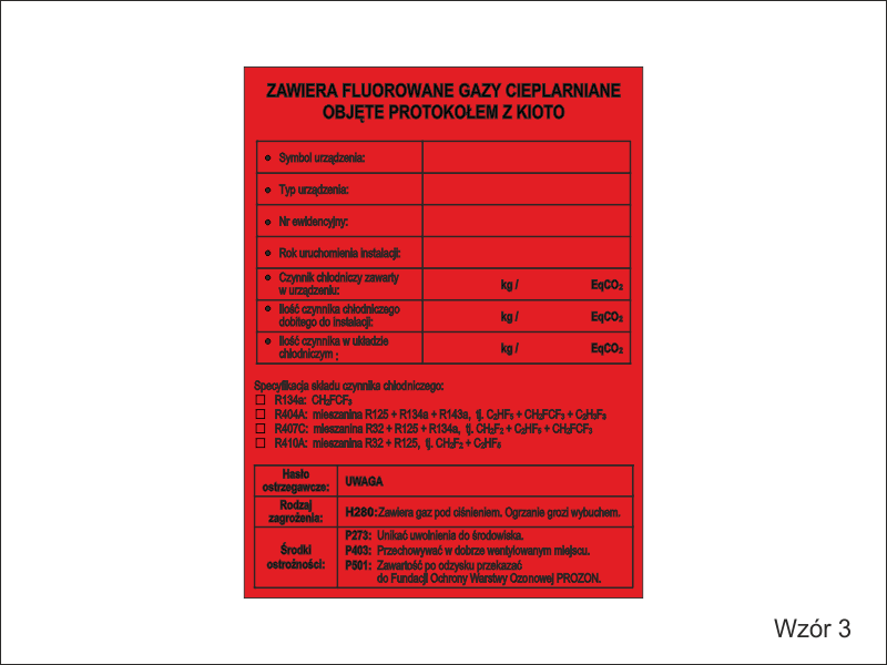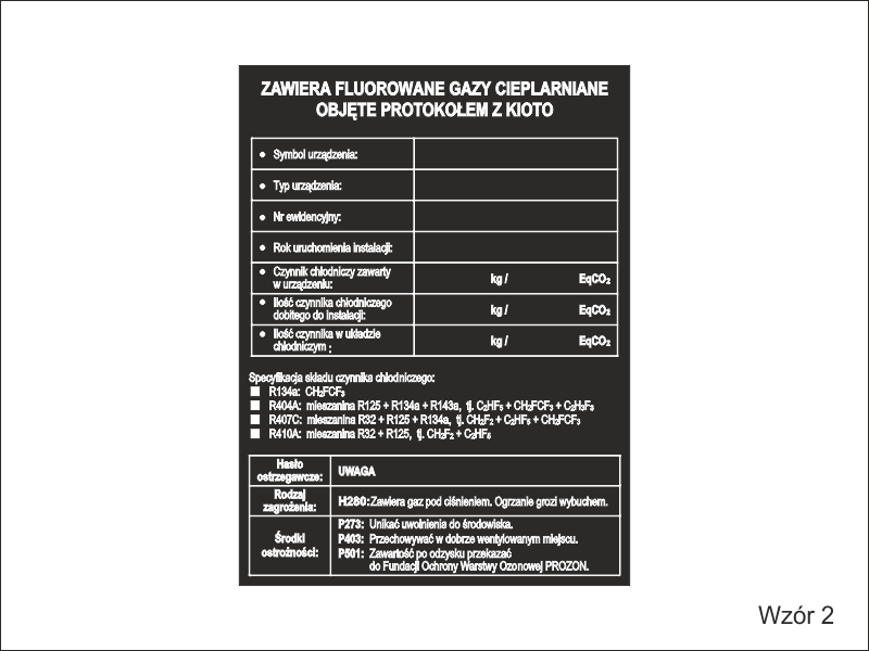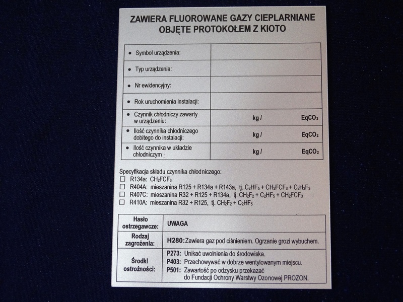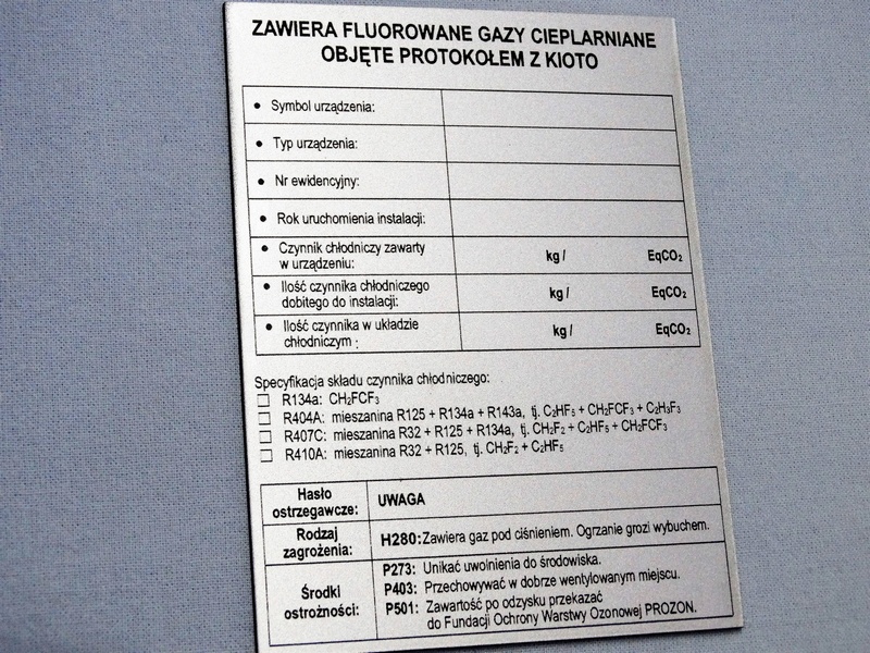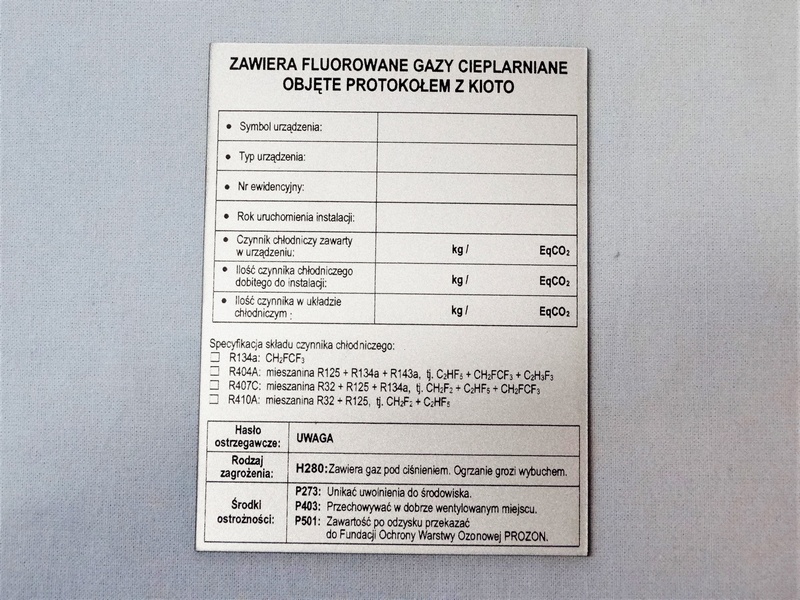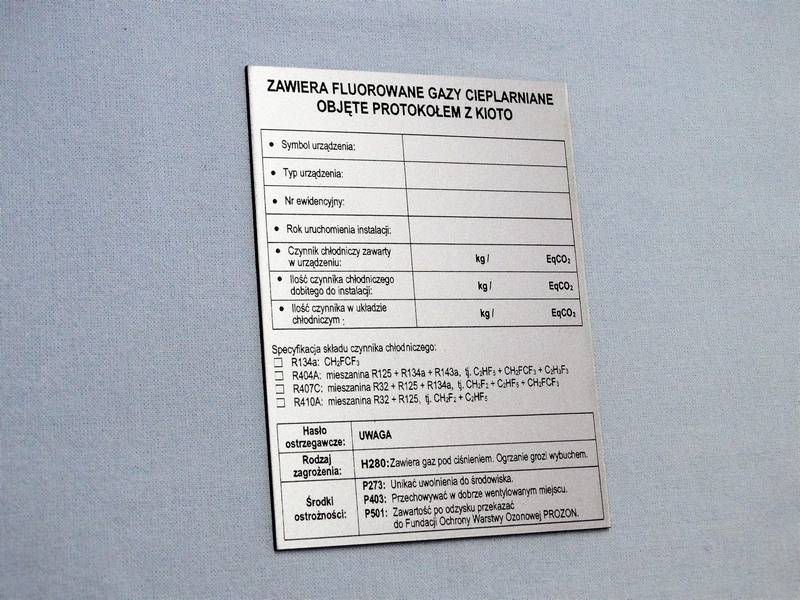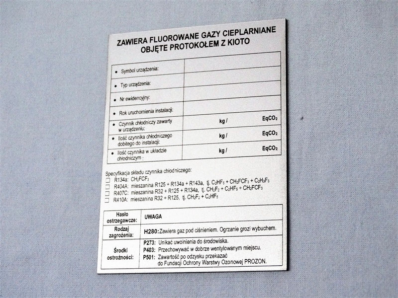 Tabliczka znamionowa może mieć inny dowolny rozmiar i występować w innej kolorystyce (czarno/białej, czerwono/czarnej lub innej)