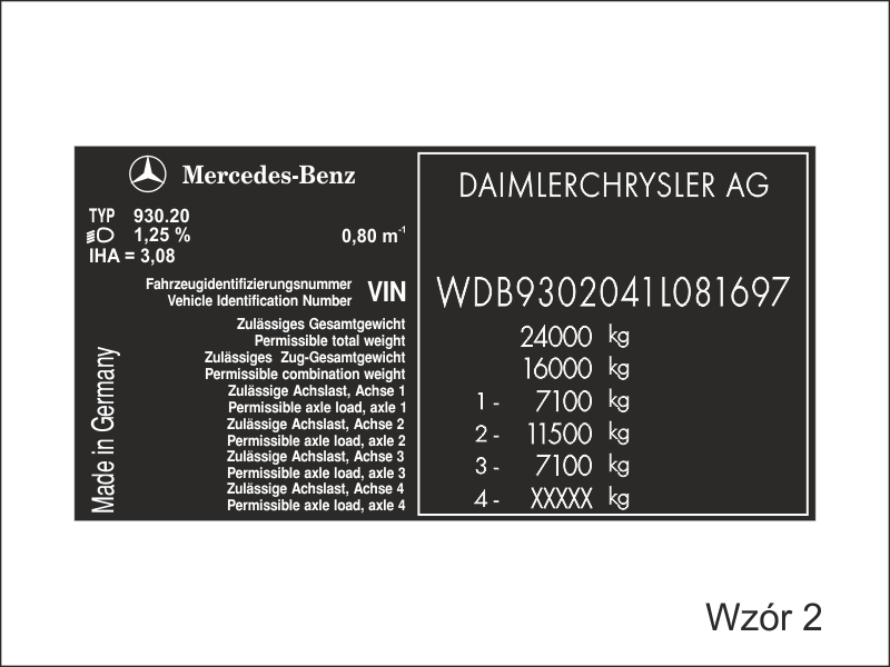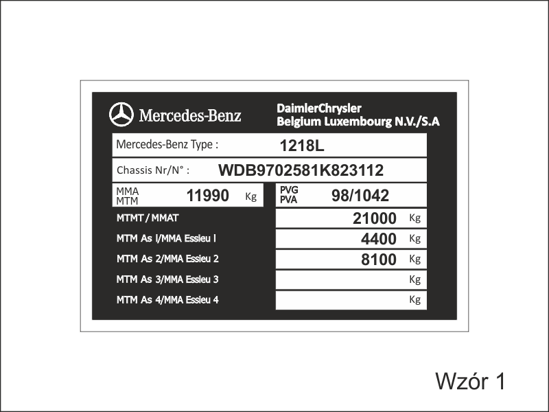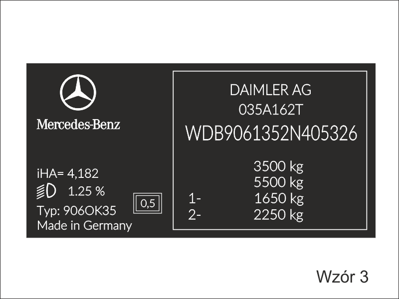 Tabliczka znamionowa może mieć inny dowolny rozmiar i występować w innej kolorystyce (srebrno/czarnej, biało/czarnej lub innej)