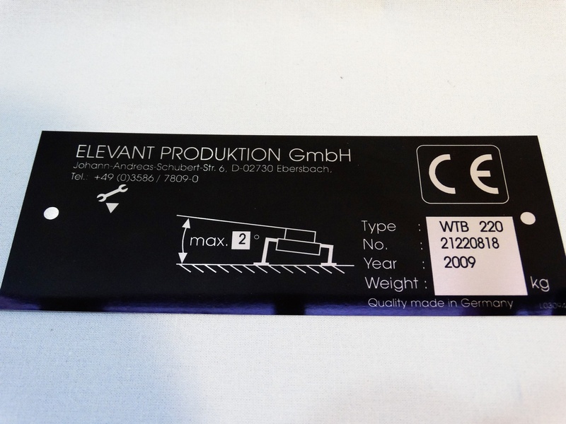 Tabliczka znamionowa z blachy aluminiowej nadrukowana, w rozmiarze 200 x 80 mm.