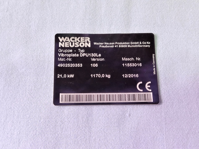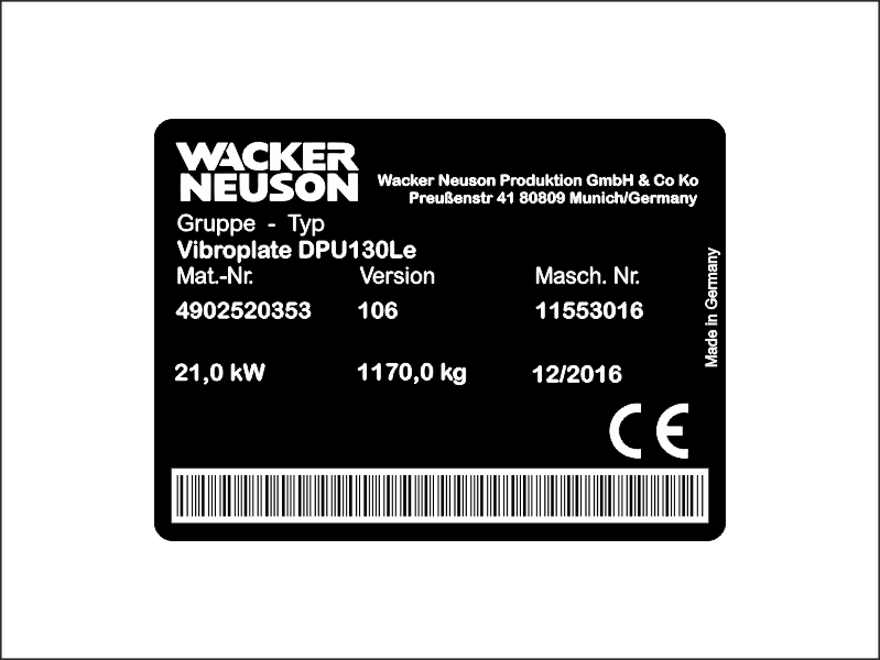 Tabliczka znamionowa Wacker z czarno/białego laminatu-naklejki, w rozmiarze 65 x 50 mm.