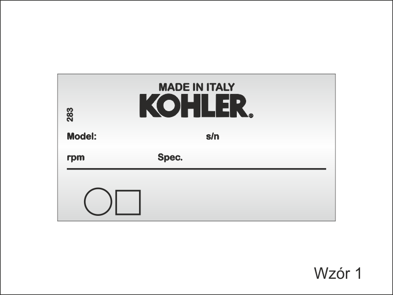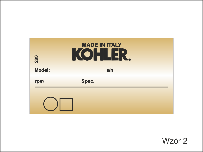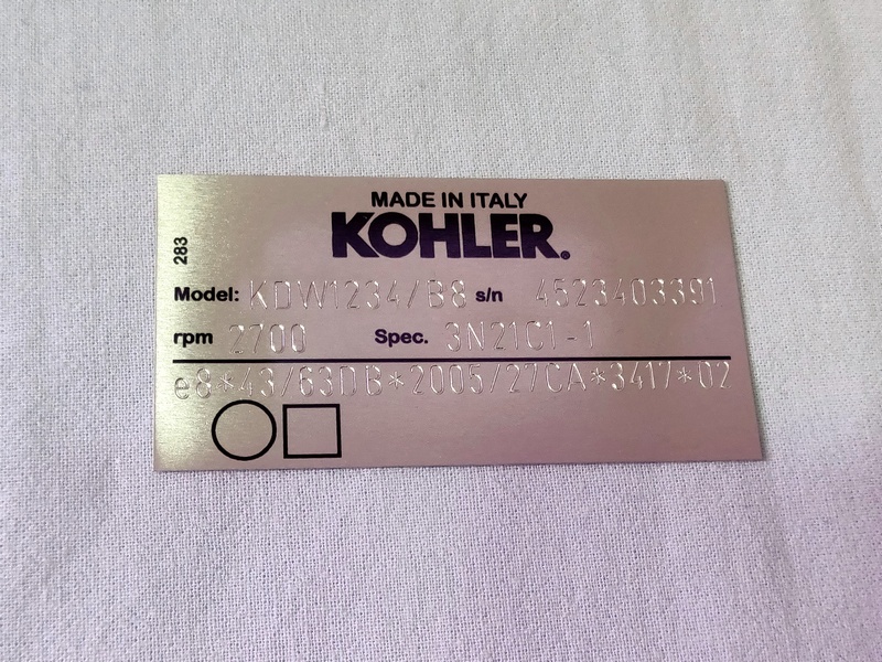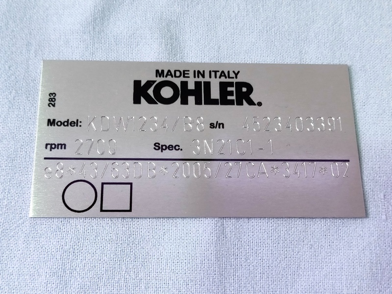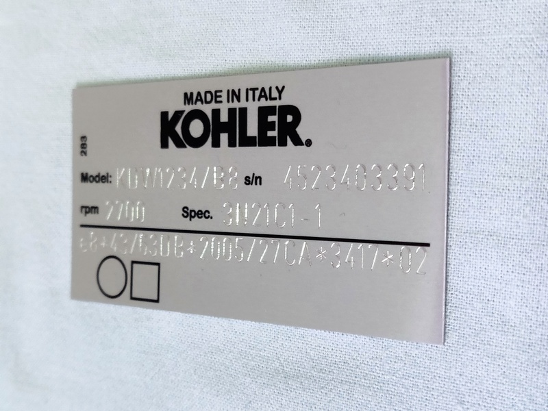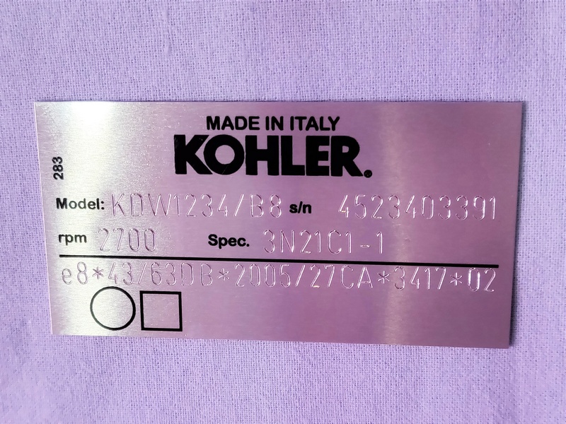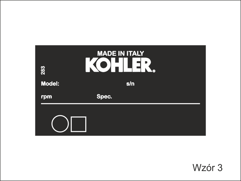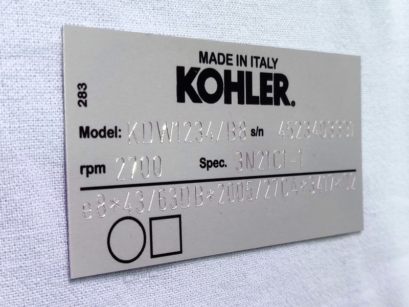 Tabliczka znamionowa Kohler z blachy aluminiowej z nadrukiem i grawerem.