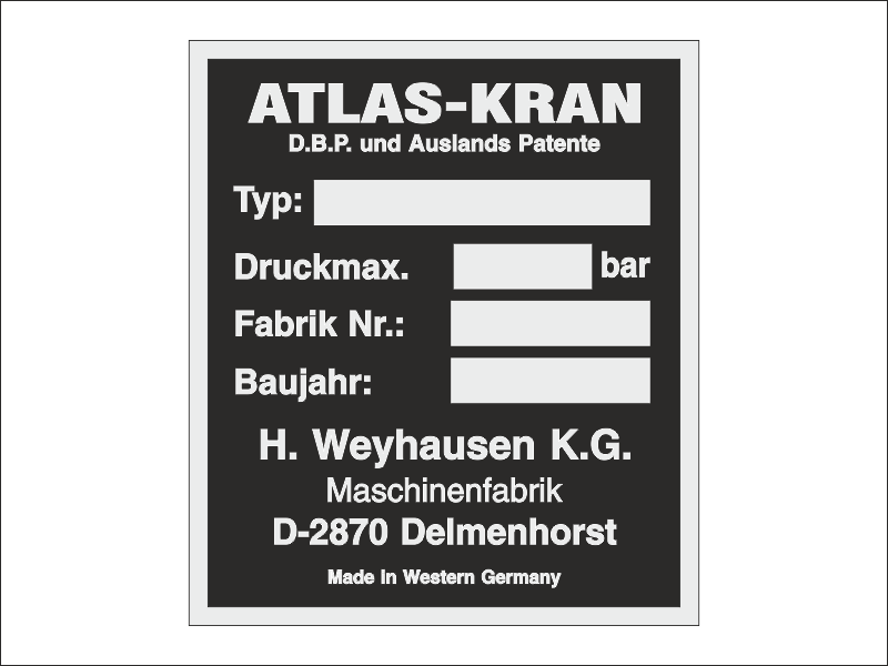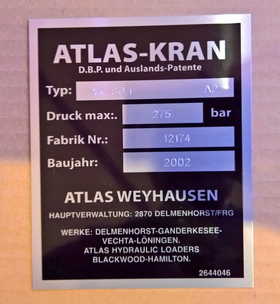 Tabliczka Atlas-Kran w rozmiarze 115 x 130 mm.