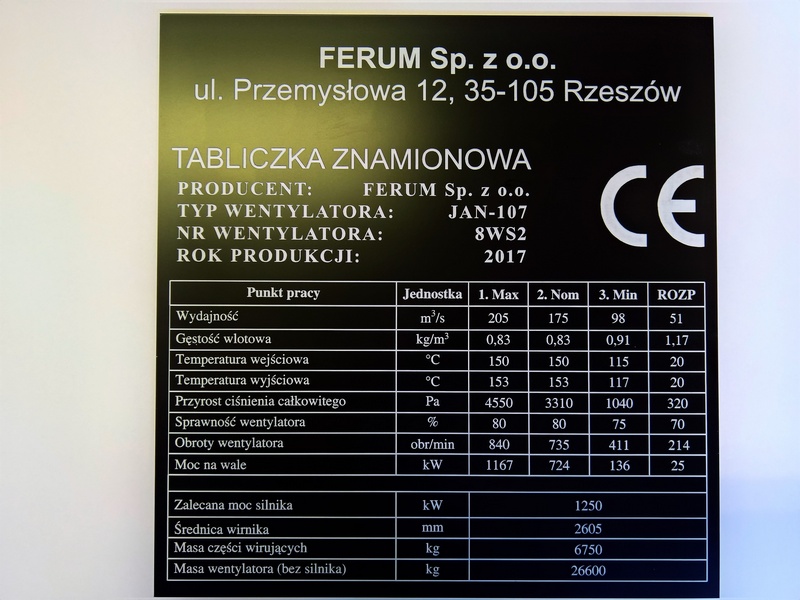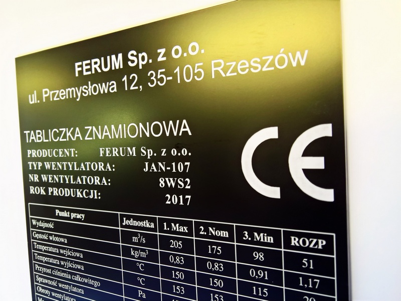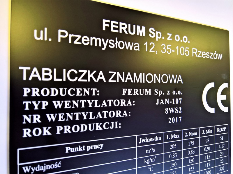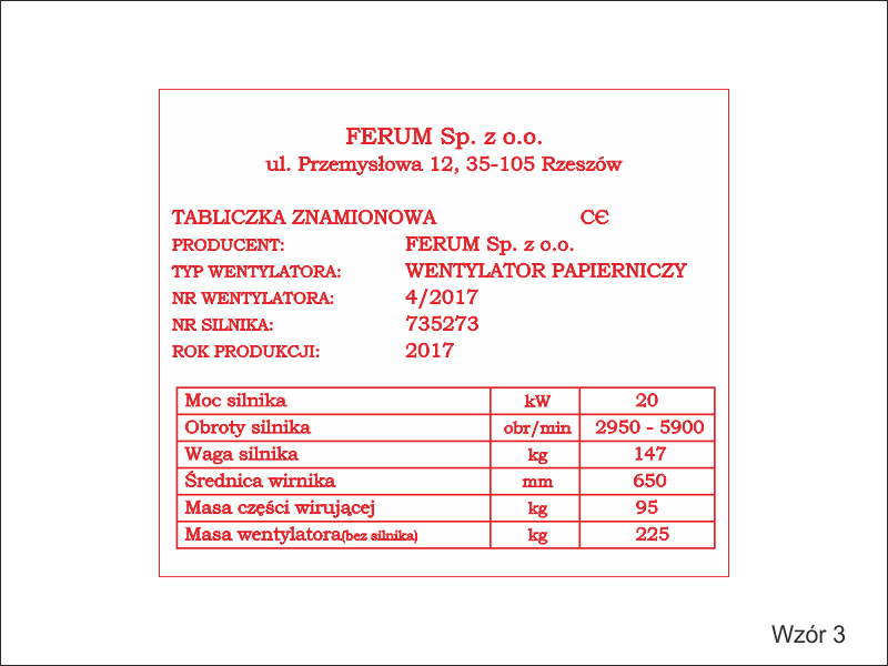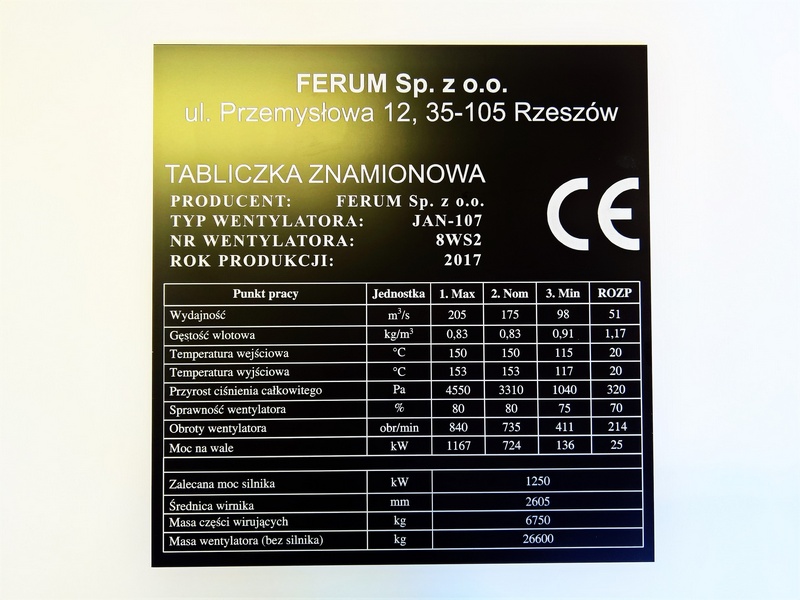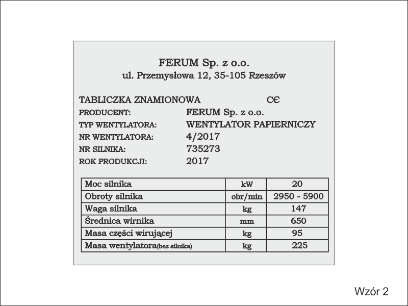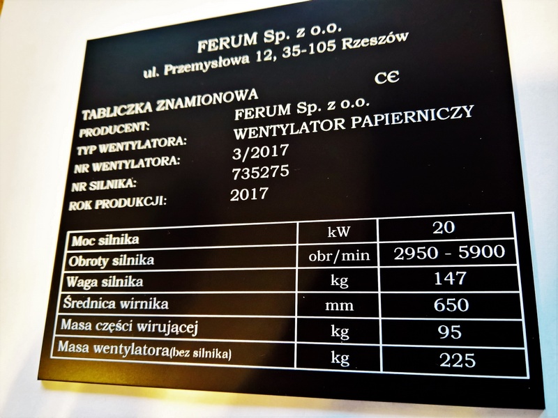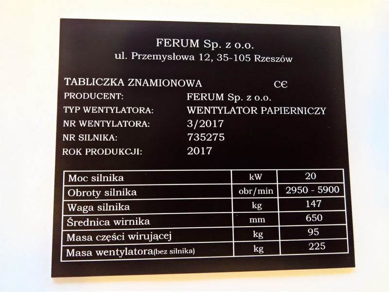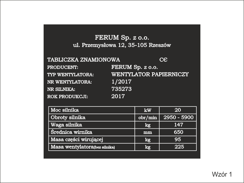 Tabliczka znamionowa może mieć inny dowolny rozmiar i występować w innej kolorystyce (srebrno/czarnej, biało/czerwonej lub innej)