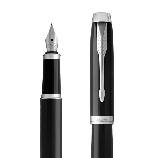 Korpus oraz skuwkę pióra wiecznego Parker IM Core Black CT wykonano z mosiądzu pokrytego błyszczącym, czarnym lakierem.