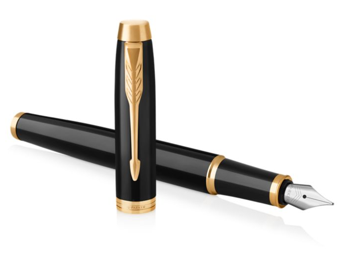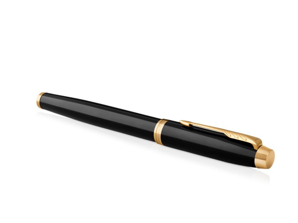 Korpus oraz skuwkę pióra wiecznego Parker IM Core Black GT wykonano z mosiądzu pokrytego błyszczącym, czarnym lakierem.