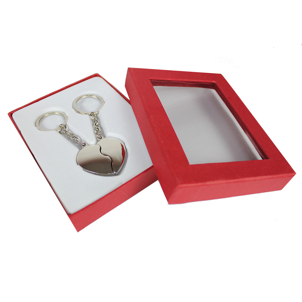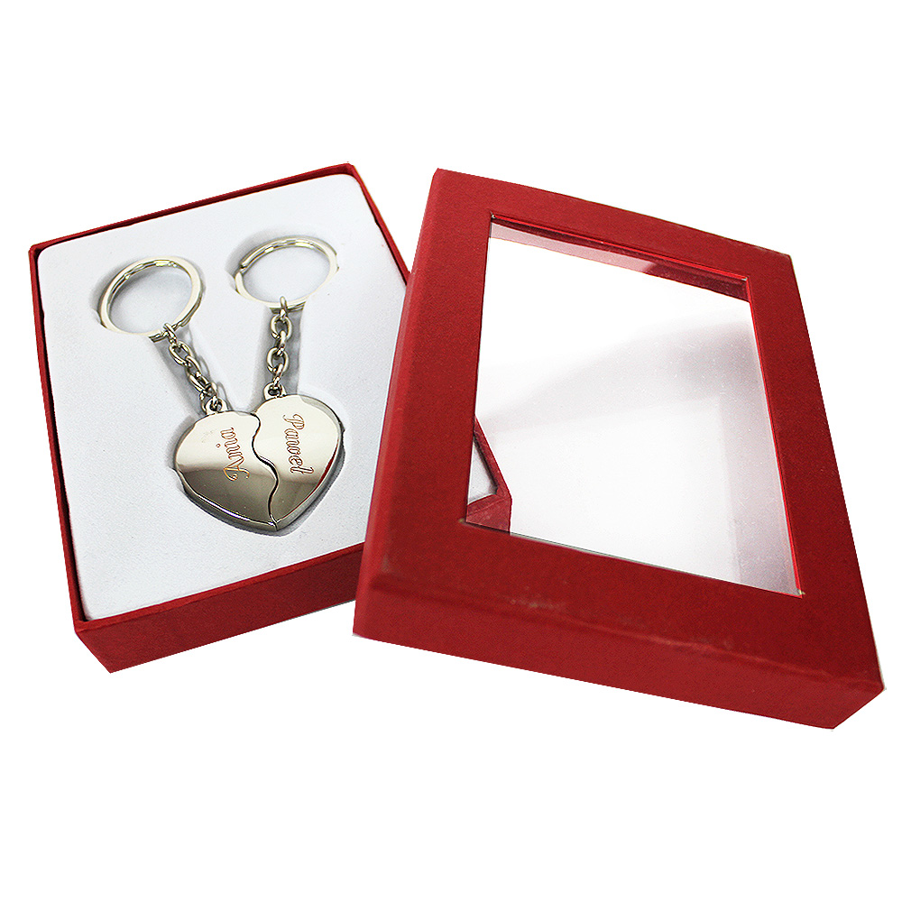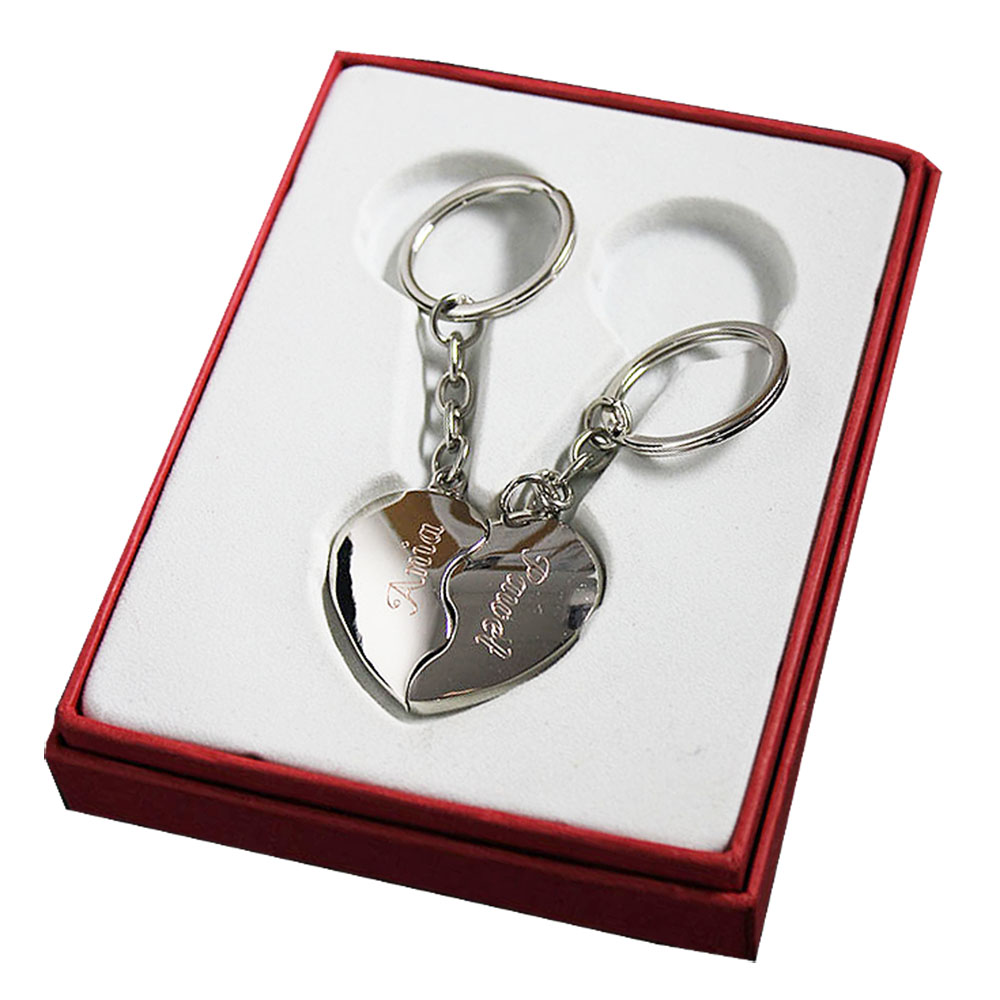 Zestaw dwóch breloków w kształcie połówek serca (po złożeniu tworzą całe serduszko) z możliwością graweru na przodzie i na odwrocie.