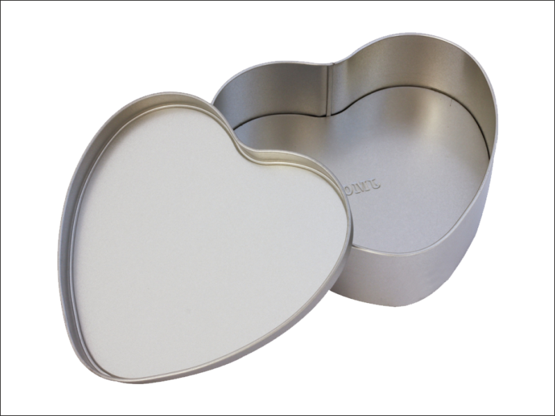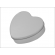 Wykonane z aluminium pudełko w kształcie serca w srebrnym kolorze.