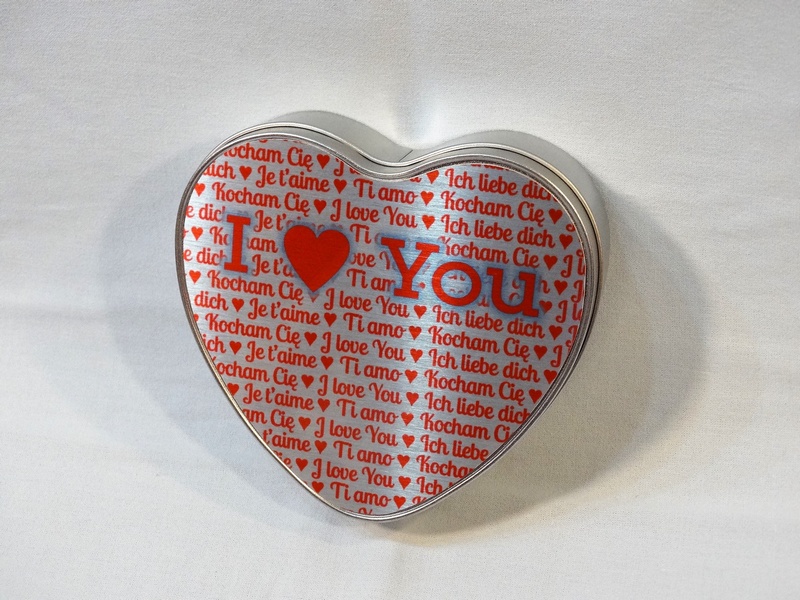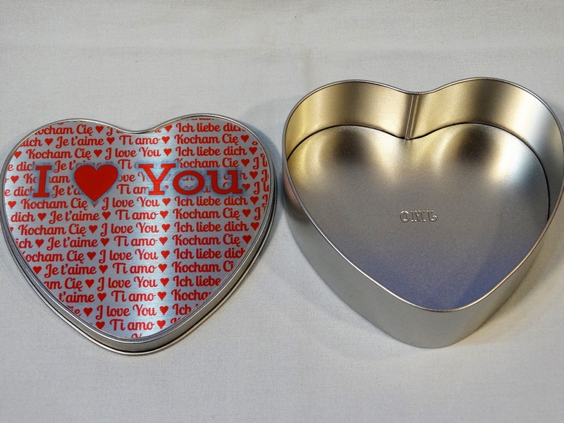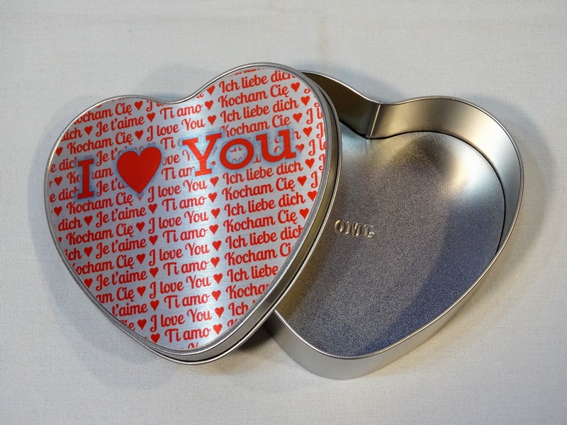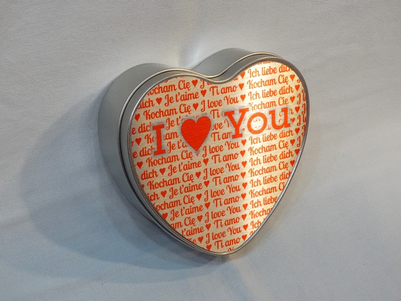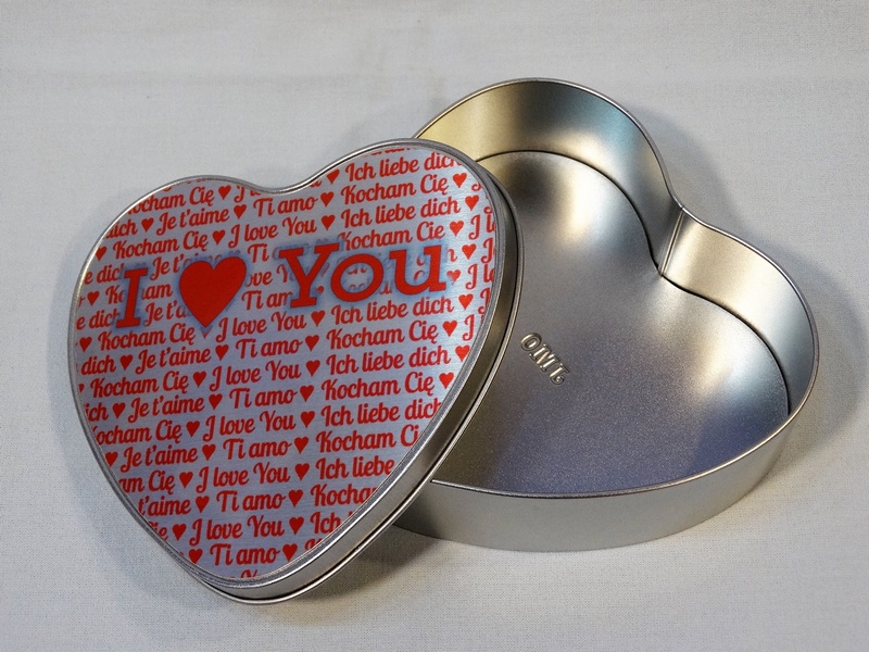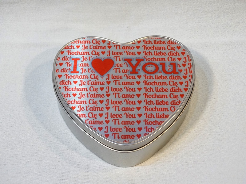 Pudełko metalowe w kształcie serca z blachą do nadruku
