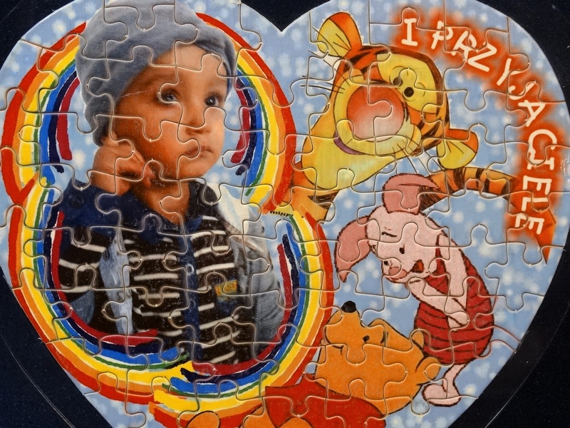 Wykonane z kartonu puzzle. Poszczególne elementy są precyzyjnie wycięte i dobrze dopasowane.