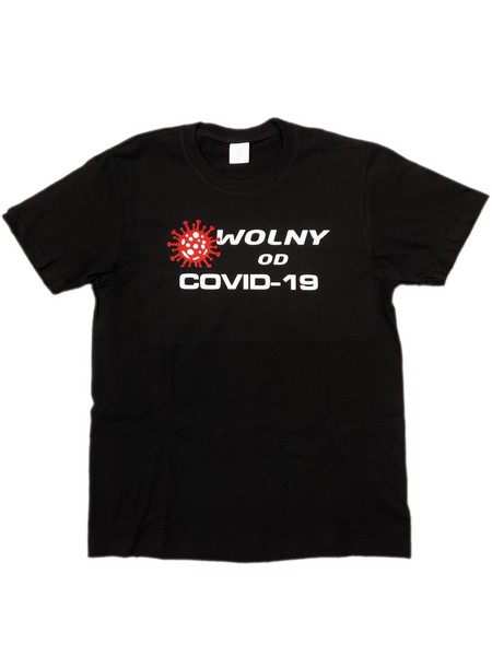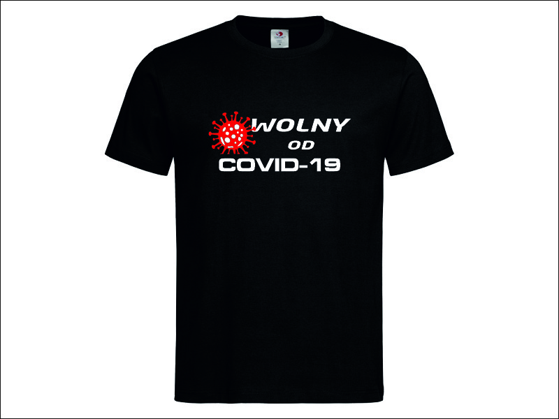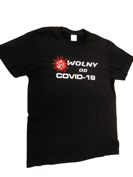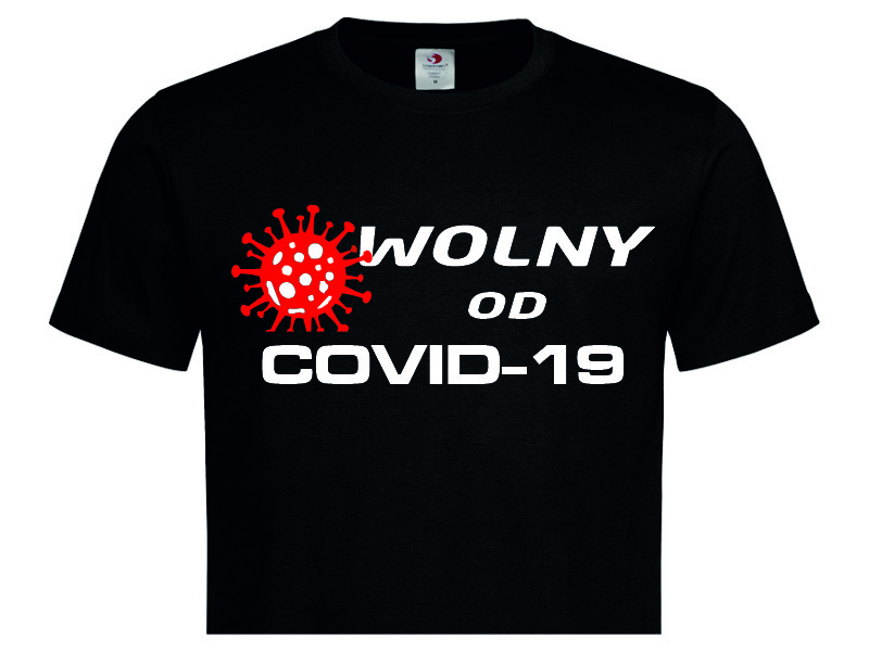Covidowa koszulka z humorystycznym koronawirusowym nadrukiem.
