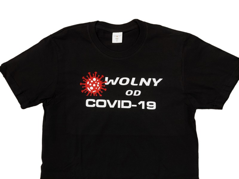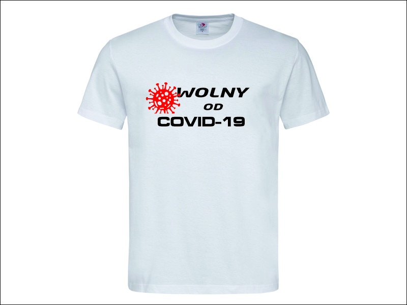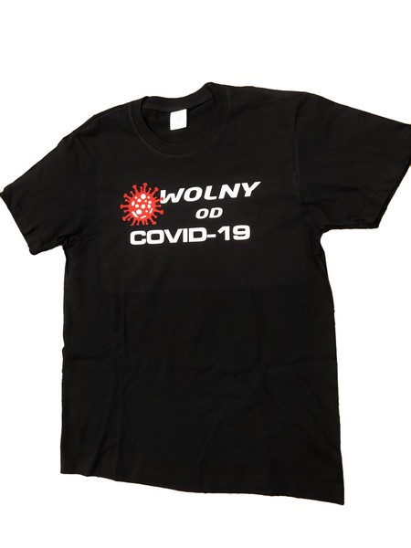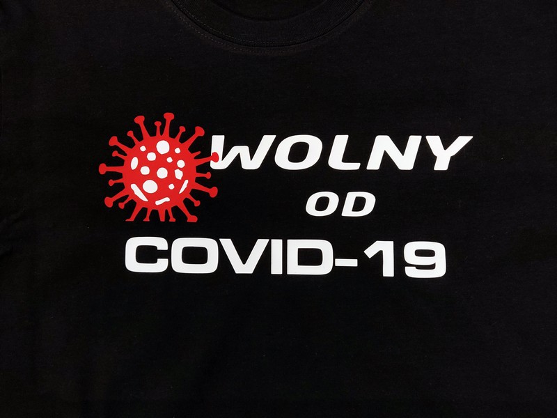 "Wolny od Covid-19" w wersji męskiej lub "Wolna od Covid-19" w wersji damskiej.