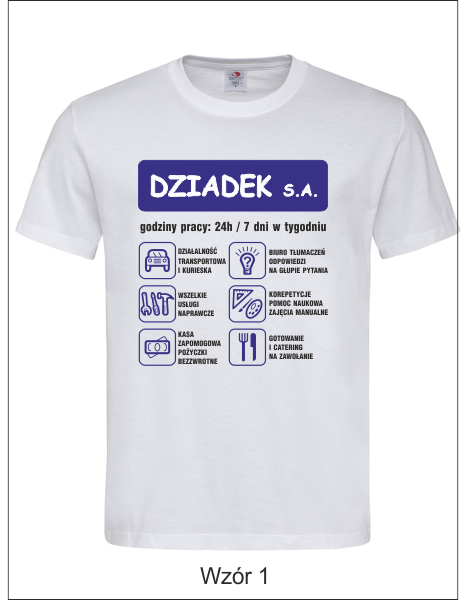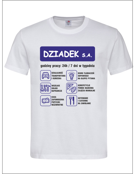 W szczególności koszulka sprawdzi się jako praktyczny upominek z okazji Dnia Dziadka.