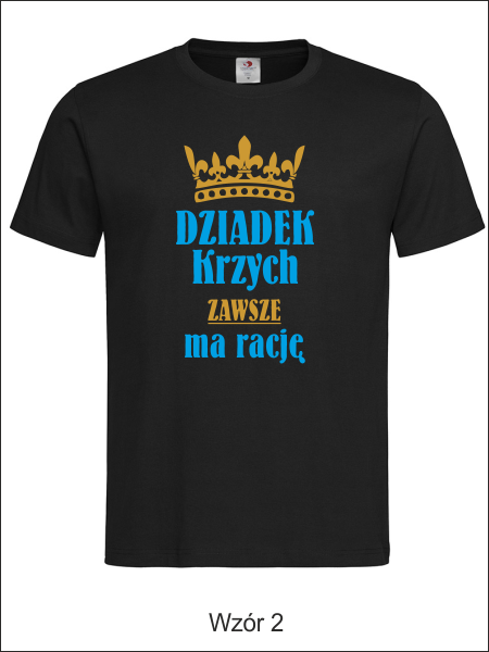 Na froncie koszulki znajduje się grafika korony oraz dedykacja dla Dziadka - "Dziadek zawsze ma rację".