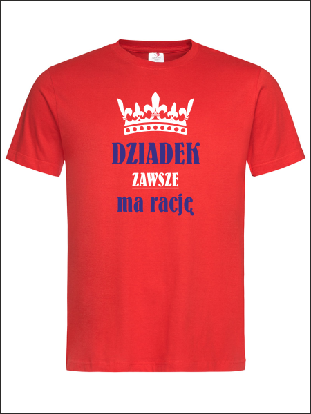 Dla Dziadka - koszulka z nadrukiem korony i dedykacji "Dziadek zawsze ma rację"